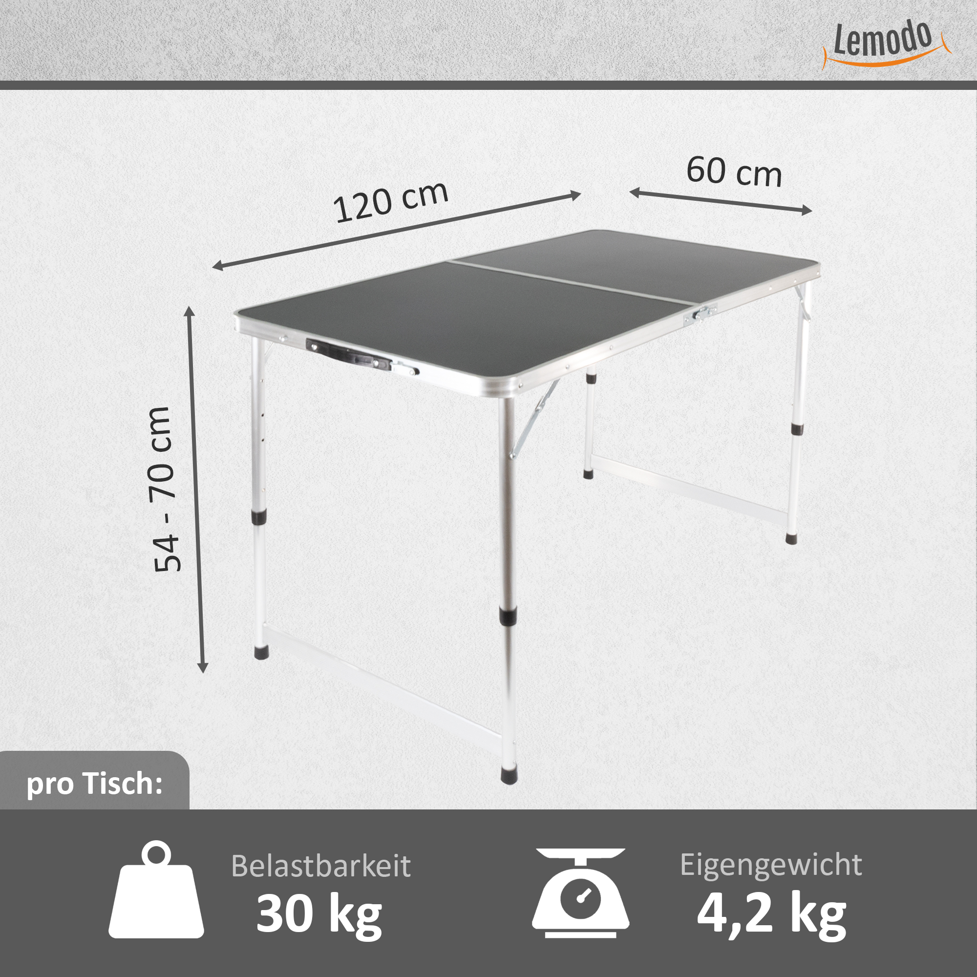 - HÖHENVERSTELLBAR: Der Falttisch ist dreifach (54 / 60 / 70 cm) in der Höhe verstellbar. Die einzelnen Beinpaare lassen sich unterschiedlich einstellen, so dass auch auf unebenen Boden ein sicherer Stand möglich ist