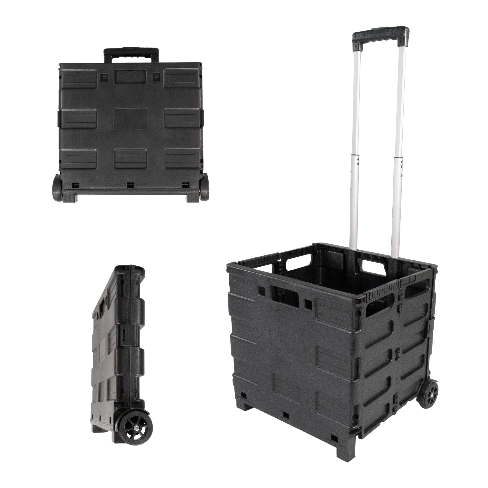 Produktinformationen "Einkaufstrolley, Transporttrolley, faltbarer Transportwagen, fahrbare Transportbox schwarz"