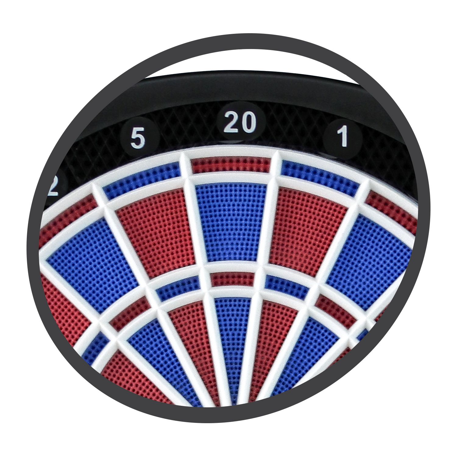 - Segmente mit 2-Loch Abstand und Catch-Ring zum Auffangen daneben geworfener Pfeile
