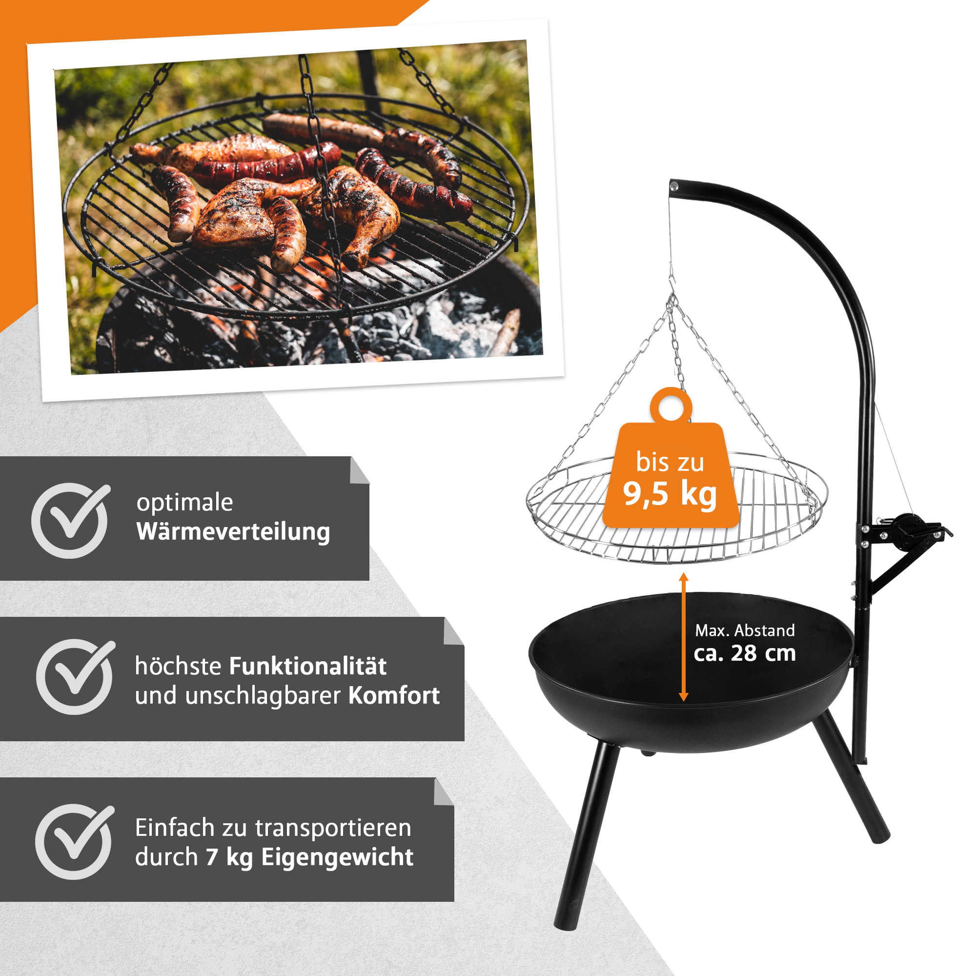 Produktinformationen "Feuerschale mit Schwenkgrill, Holzkohlegrill mit Kurbel und höhenverstellbarem Grillgitter"