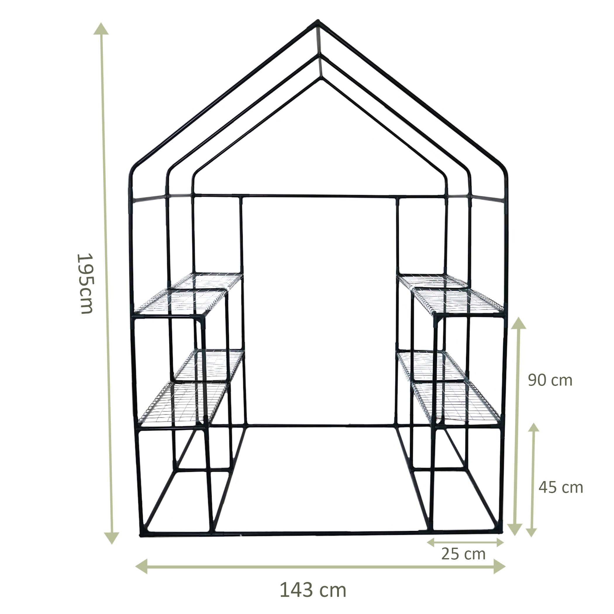 Unser Tomatengewächshaus stellt eine umfassende Lösung für den Anbau gesunder und ergiebiger Tomatenpflanzen dar. Es bietet optimalen Schutz vor ungünstigen Witterungsbedingungen und Schädlingen. In dieser geschützten Umgebung können Deine Pflanzen unbehelligt heranreifen, ohne den schädlichen Einflüssen von Hagel, Sturm oder Schädlingsbefall ausgesetzt zu sein. Zudem verlängert das Tomaten Gewächshaus die Anbausaison und ermöglicht somit eine längere Erntezeit Ein weiterer Vorteil unseres Tomatenhauses ist die Benutzerfreundlichkeit. Im Vergleich zu traditionellen Gewächshäusern lässt es sich leicht und ohne spezielle Werkzeuge oder vertiefte Kenntnisse auf- und abbauen. Auch im Alleingang kann das Gewächshaus problemlos installiert werden, wodurch Zeit und Aufwand gespart werden. Darüber hinaus legen wir großen Wert auf Qualität und Haltbarkeit. Das Tomatendach zeichnet sich durch eine optimierte Dachstruktur aus, die das Risiko der Bildung von Wassertaschen verringert. Verstärkungen mit zusätzlichen Streben und einem soliden Rohrdurchmesser von 19 mm sorgen für eine verbesserte Robustheit und somit eine verlängerte Lebensdauer. Nicht zuletzt ist das Tomatenzelt eine kosteneffiziente Variante im Vergleich zu anderen Schutzmaßnahmen. Es schützt Deine Pflanzen effektiv vor Schädlingen, ohne dabei Dein Budget übermäßig zu belasten. Mit dieser Kombination aus Vorteilen ist unser Foliengewächshaus die perfekte Wahl für alle, die hochwertige und reichhaltige Tomatenernten anstreben, ohne dabei Abstriche bei Qualität und Bedienkomfort machen zu wollen. SCHUTZ VOR SCHLECHTWETTER UND SCHÄDLINGEN: Mit unserem Tomaten Gewächshaus wachsen Deine Pflanzen in einer geschützten Umgebung, ohne die schädlichen Einflüssen von schlechtem Wetter, wie Hagel oder Sturm und ohne SchädlingeHÖHERER ERTRAG: In einem Tomatengewächshaus können Deine Pflanzen schneller und effizienter wachsen. Du kannst die Bedingungen im Inneren des Foliengewächshauses gut auf die Bedürfnisse Deiner Pflanzen einstellenEINFACHER AUF- UND ABBAU: Das Auf- und Abbauen unsere Tomatenhauses ist im Vergleich zu Gewächshäusern kinderleicht und erfordert kein spezielles Werkzeug oder Fachwissen. Die Montage des Treibhauses kann von einer Person durchgeführt werdenVERBESSERTE QUALITÄT: Das Tomatendach hat eine optimierte Dachkonstruktion durch zusätzliche Streben. Dadurch können sich keine Wassertaschen mehr auf dem Dach bilden. Die neuen Verstrebungen weisen einen soliden Durchmesser von 19 mm aufKOSTENGÜNSTIG: Das Tomatenzelt stellen eine kosteneffektive Alternative zu anderen Schutzmethoden wie Gewächshäusern dar und sind somit eine preisgünstige Möglichkeit, um Deine Pflanzen vor Schädlingen zu schützenProduktdetails: Abmessungen: ca. 200 x 77 x 169/149 cm (L x B x H) Eingangshöhe: ca. 148 cm Eingangsbreite: ca. 172 cm Produkt Material: 130 g/qm PE-Abdeckung 2 Fenster 0,4 mm dickes Stahlrohr mit Pulverbeschichtung in grün 19 mm Rohrdurchmesser UV-beständig Zusatzstreben unter der Dachfolie 4 x Windseile 4 x Haken mit zusätzlichem Rahmen an den Seiten und auf der Rückseite SCHUTZ VOR SCHLECHTWETTER UND SCHÄDLINGENEin Tomatenhaus bietet eine äußerst effektive Möglichkeit, um Deine Zier- und Nutzpflanzen vor Schädlingsbefall und ungünstigen Umwelteinflüssen zu schützen. Durch den Einsatz eines Foliengewächshauses kannst Du Deine Pflanzen vor schädlichen Umwelteinflüssen schützen, ohne dass Du dabei auf den Einsatz von Pestiziden und anderen chemischen Schutzmitteln zurückgreifen musst. Insbesondere Tomatenpflanzen sind anfällig für Schädlinge, weshalb ein Foliengewächshaus mit verlängerter Folie an der Bodenseite eine ausgezeichnete Wahl darstellt. Die verlängerte Gewächshausfolie bietet einen effektiven Barriereschutz gegen Schädlinge, die von unten in das Gewächshaus eindringen wollen. Aber auch andere Nutzpflanzen wie Salat, Paprika, Gurken oder Kräuter profitieren von einem Foliengewächshaus. Die geschützte Umgebung schafft bessere Wachstumsbedingungen und fördert eine gesunde und starke Pflanzenentwicklung. Ein Treibhaus bietet außerdem die Möglichkeit, die Anbausaison zu verlängern und früher im Jahr mit dem Anbau zu beginnen.Somit stellt ein Foliengewächshaus eine natürliche und umweltfreundliche Option für den Pflanzenschutz dar. HÖHERER ERTRAGEin Tomatengewächshaus bietet optimale Bedingungen für eine erfolgreiche Ernte. Die Pflanzen profitieren von einem geschützten Klima und einer ziemlich konstanten Temperatur, die im Freiland nicht immer gewährleistet sind. Der Treibhauseffekt ist gut für Tomaten, weil er ein kontrolliertes Mikroklima im Gewächshaus schafft, das die Temperatur und Luftfeuchtigkeit auf optimale Werte für das Pflanzenwachstum reguliert. Dies schafft ideale Bedingungen für Tomaten, um schneller und gesünder zu wachsen, was zu höheren Erträgen führen kann. Das Tomaten Gewächshaus schützt sie auch vor starkem Wind und Starkregen, was das Wachstum und die Gesundheit der Pflanzen fördert. Dank des geschützten Anbaus im Tomatengewächshaus wachsen die Pflanzen schneller und können früher geerntet werden. Die Wärme im Gewächshaus unterstützt das Wachstum und die Fruchtbildung der Tomaten. Zudem ermöglicht das Foliengewächshaus auch den Anbau von Pflanzen, die normalerweise nicht in der Region gut wachsen würden. EINFACHER AUF- UND BAUDas Tomatenzelt zeichnet sich durch seine einfache Handhabung aus. Im Vergleich zu herkömmlichen Gewächshäusern erfordert der Auf- und Abbau weder speziellen Werkzeuge noch Fachkenntnisse oder Fundament. Das durchdachte Design ermöglicht eine schnelle und unkomplizierte Montage, die von einer Person in kurzer Zeit durchgeführt werden kann.Das Tomatendach eignet sich sowohl für den saisonalen als auch für den ganzjährigen Einsatz. Es bietet eine ideale Umgebung für den Anbau Deiner Tomaten und anderen Pflanzen. Mit seinem einfachen Auf- und Abbau und der hohen Fl