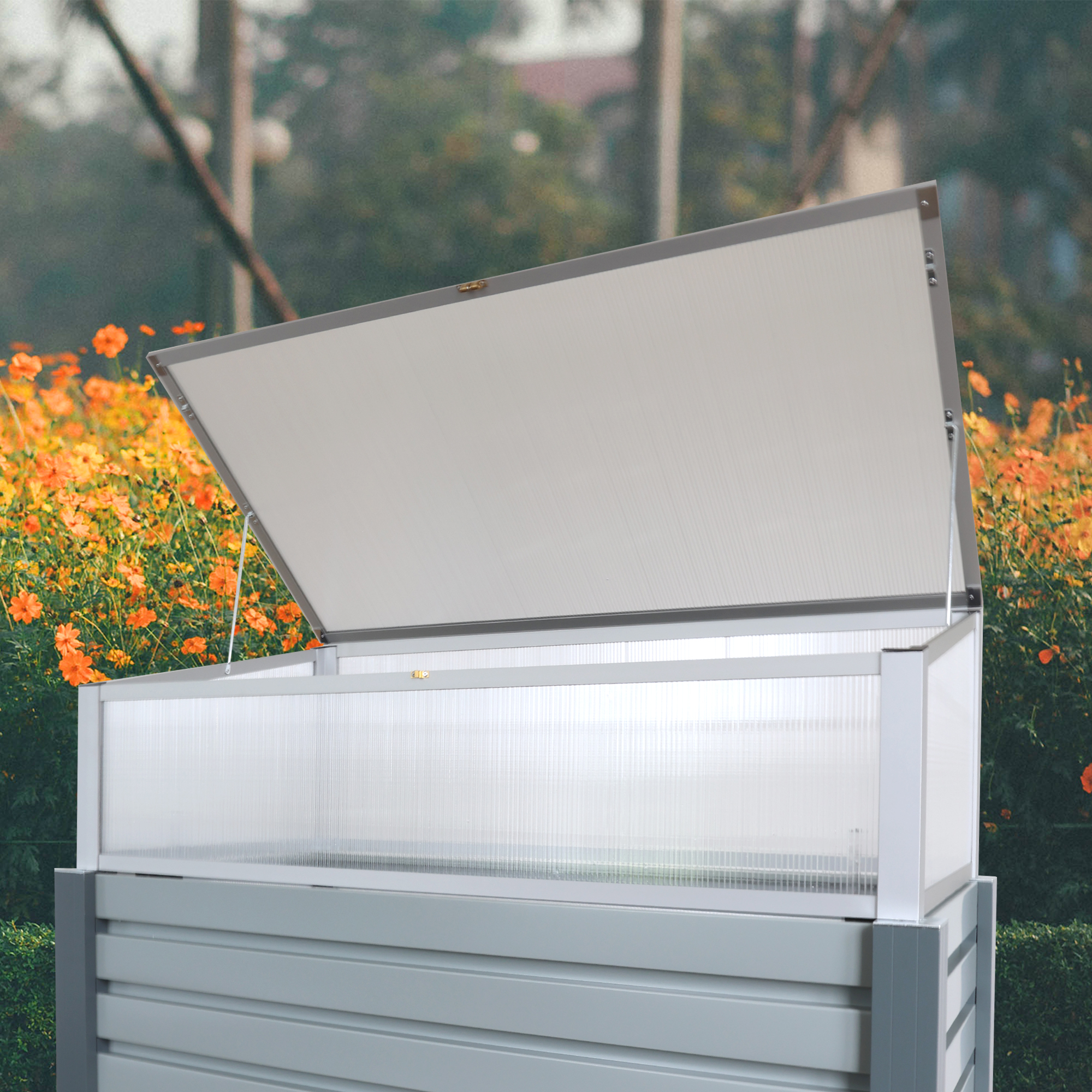 Frühbeet aus Aluminium, Frühbeetaufsatz für Hochbeete, Frühbeetkasten 56,5 x 110 cm