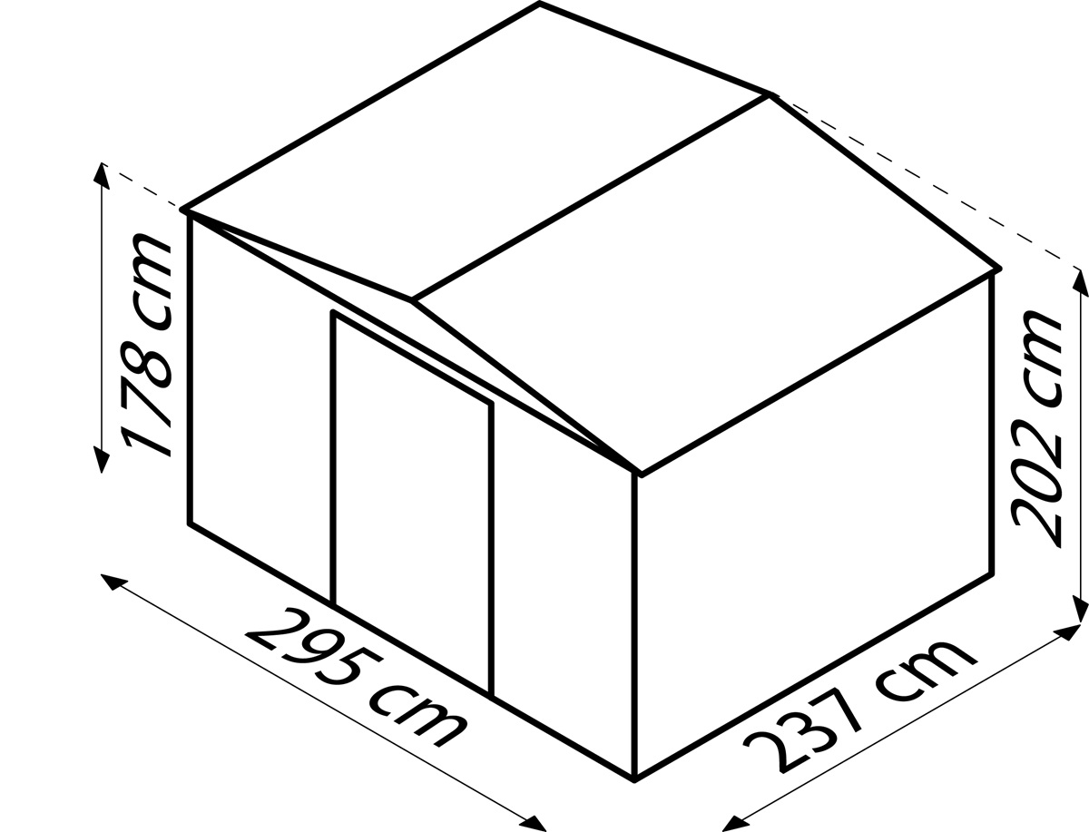 - Außenmaß: 247 x 308 x 202 cm (L x B x H)