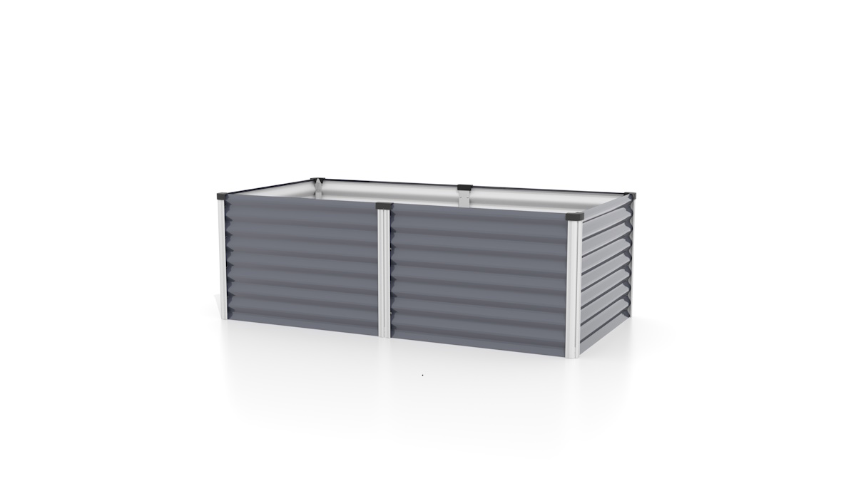 Dieses moderne Hochbeet von Vitavia eignet sich perfekt zum rückenfreundlichen Anbau von frischen Kräutern, Gemüse und Pflanzen. Das granit-farbige Metallbeet kann auch zur dekorativen Gartengestaltung eingesetzt werden. Das rechteckige Beet wird aus Zincalume®-Blechen und Eckleisten aus hochwertigem, eloxiertem Aluminium gefertigt und ist dadurch extrem witterungsbeständig. Bei dem Werkstoff „Zincalume®“ handelt es sich um eine mit Zink und Aluminium beschichtete Stahlwelle, die durch die Behandlung eine vier Mal längere Lebensdauer als galvanisierter Stahl erhält. Anders als bei herkömmlichen Hochbeeten aus Holz, wird hier keine Innenfolie benötigt, da das Zincalume® nicht mit organischen Materialien wie Erde und Pflanzen reagiert.