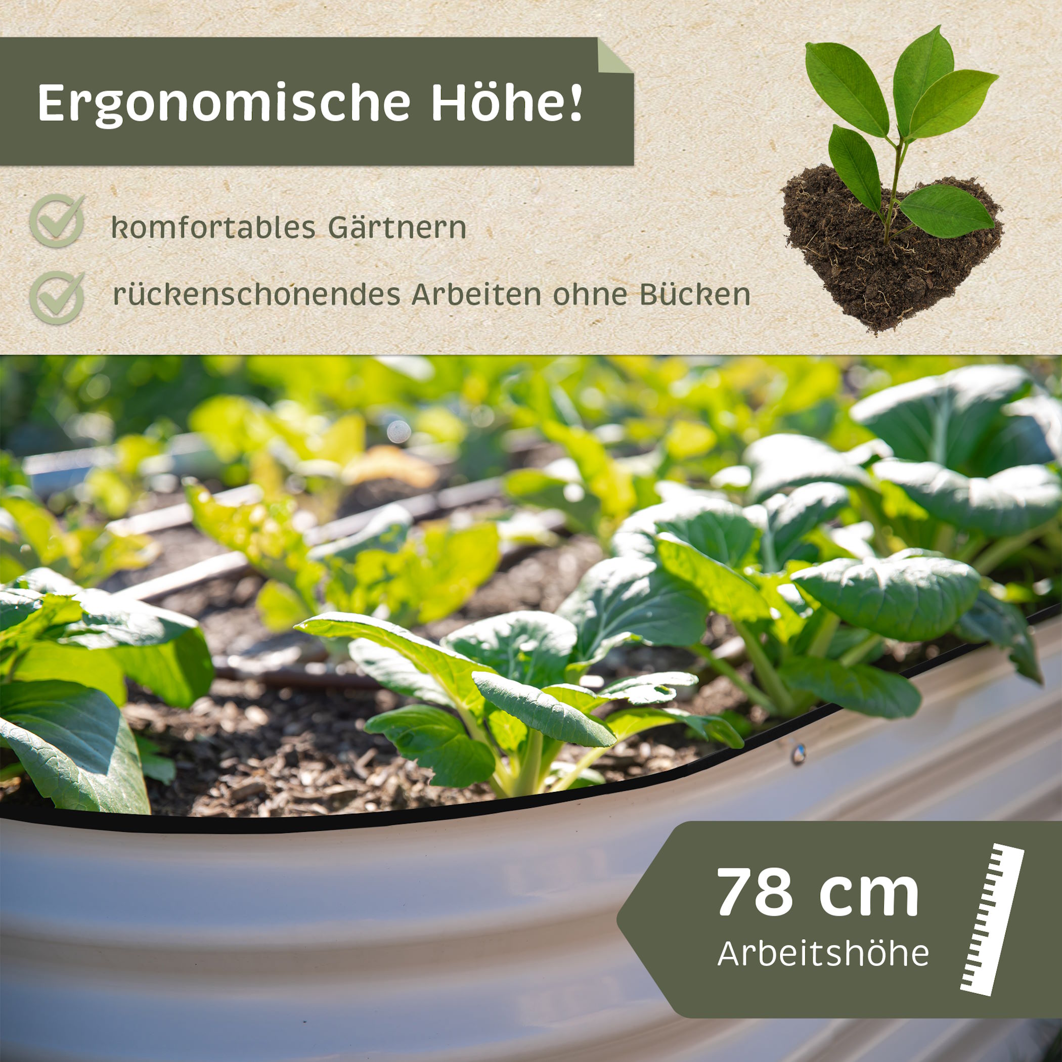 - Rückenfreundliche Höhe für komfortables und entspanntes Gärtnern