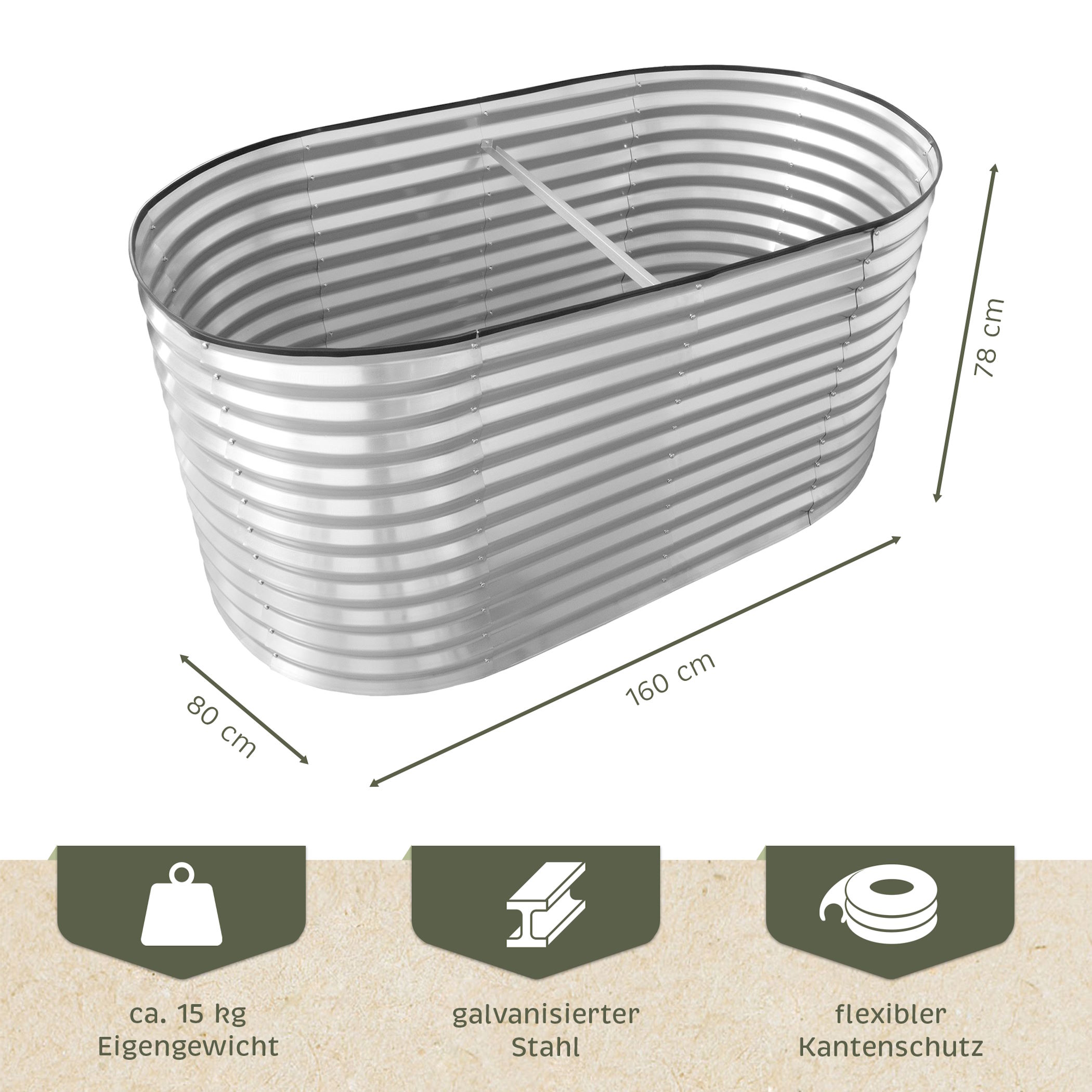 Produktinformationen "Hochbeet Metall oval 160x80x78cm Silber, Pflanzbeet, Gartenbeet"