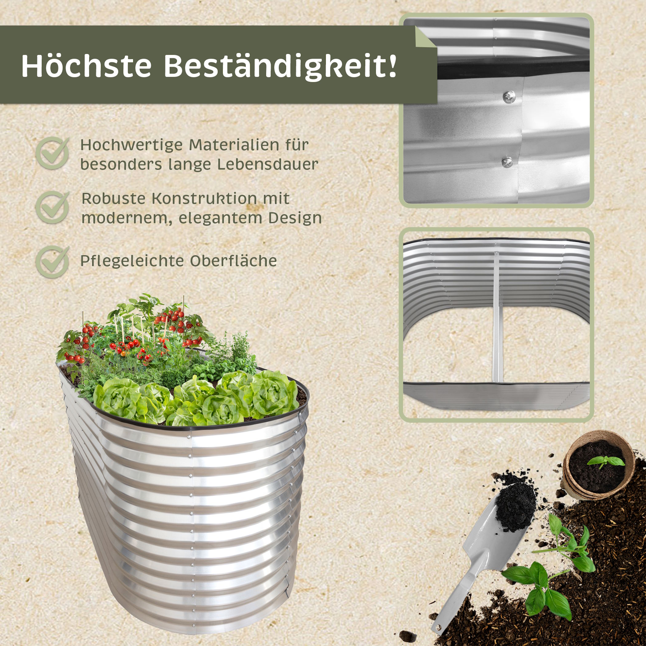 - Materialstärke Hochbeet: 0,5mm
