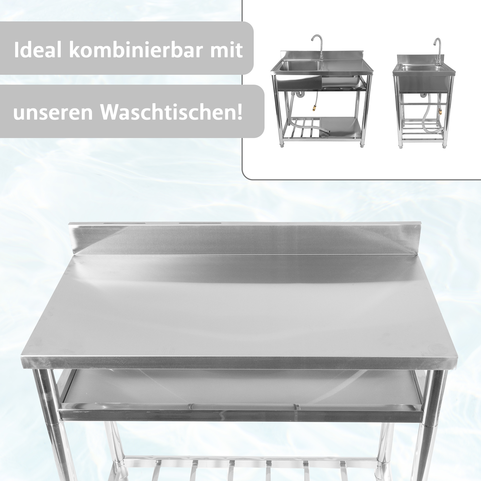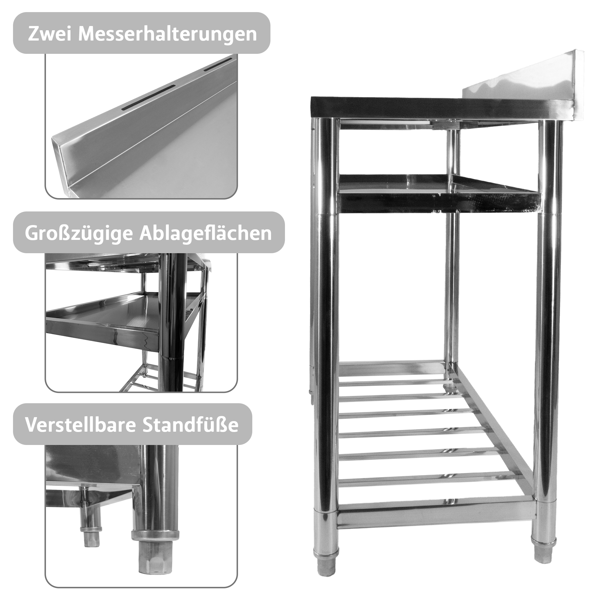 - Material Arbeitstisch/oberes Ablagefach: Edelstahl 304