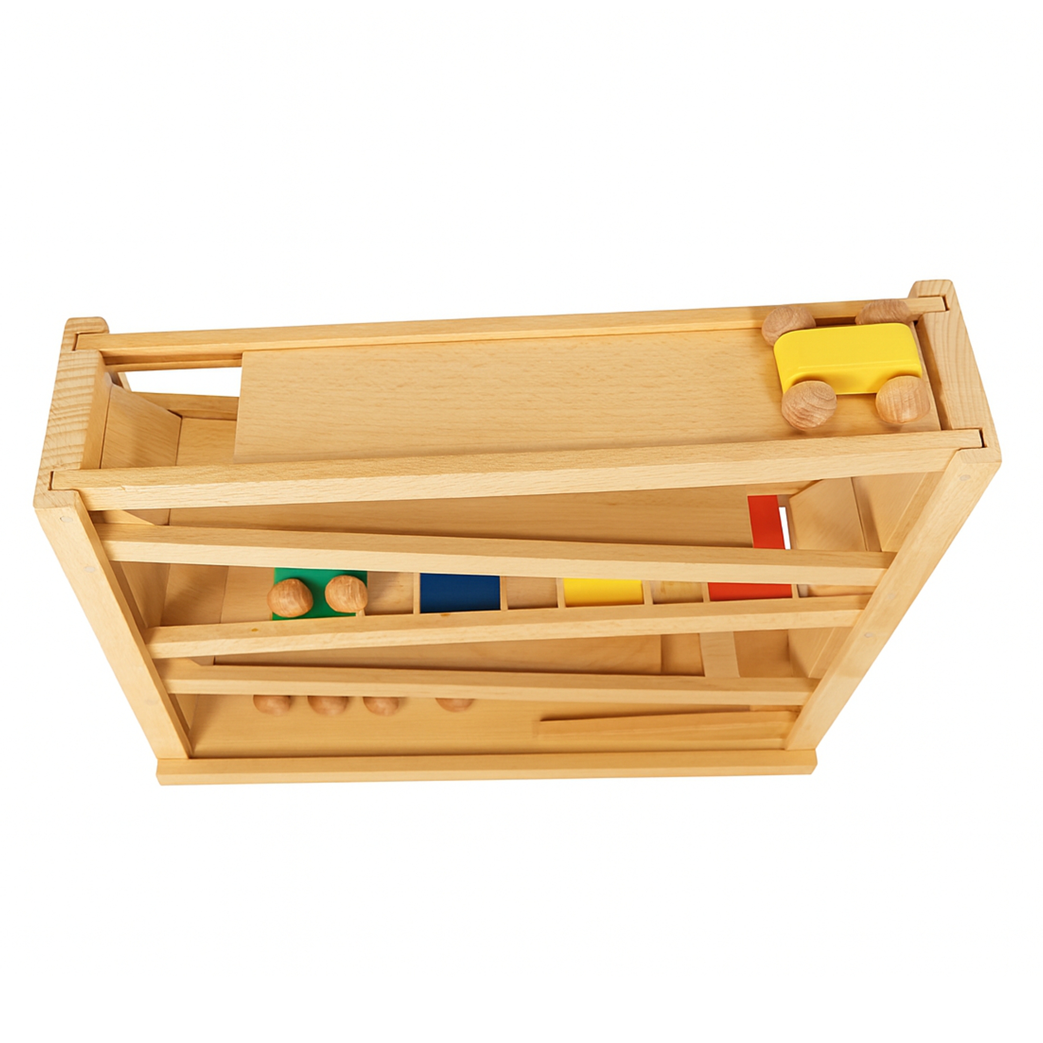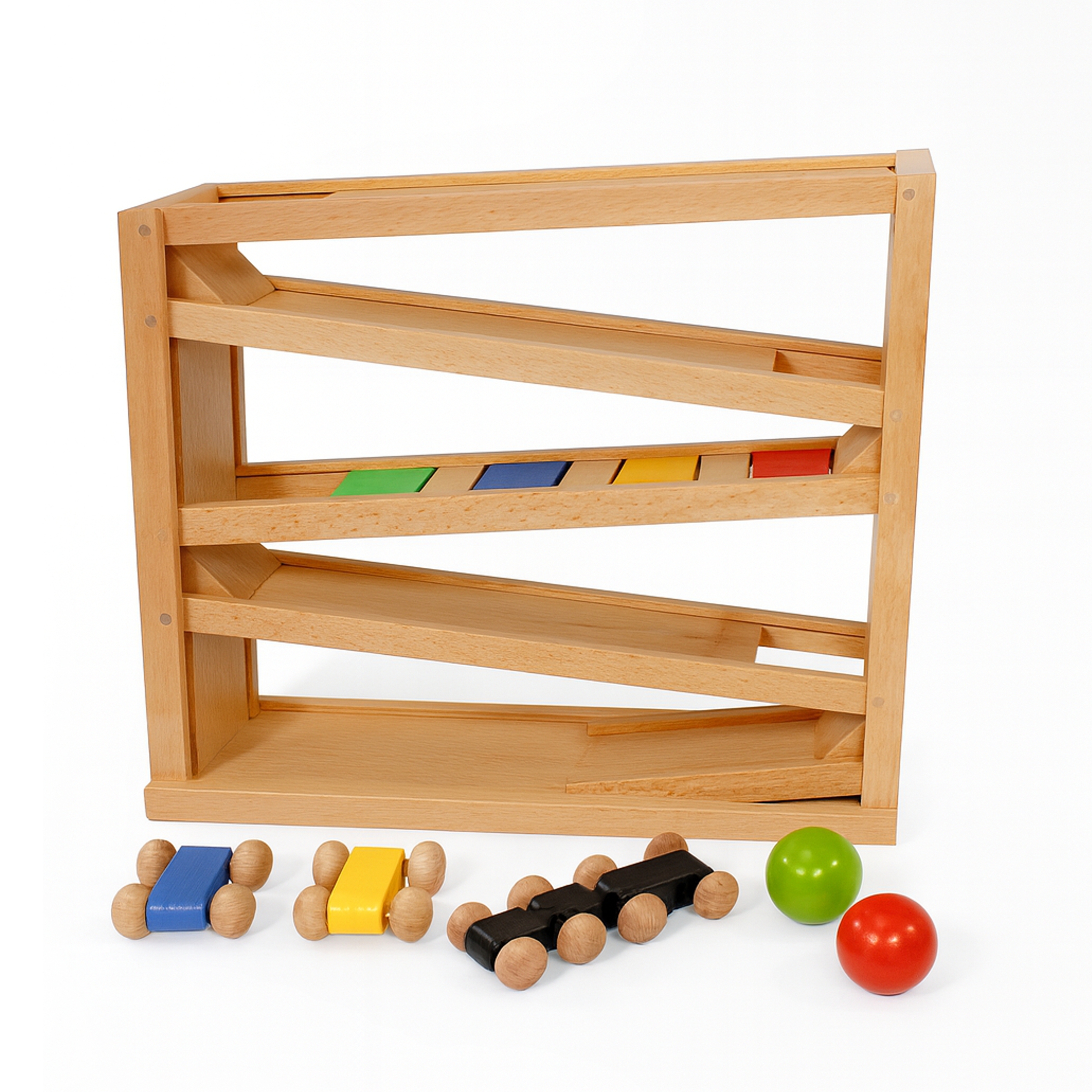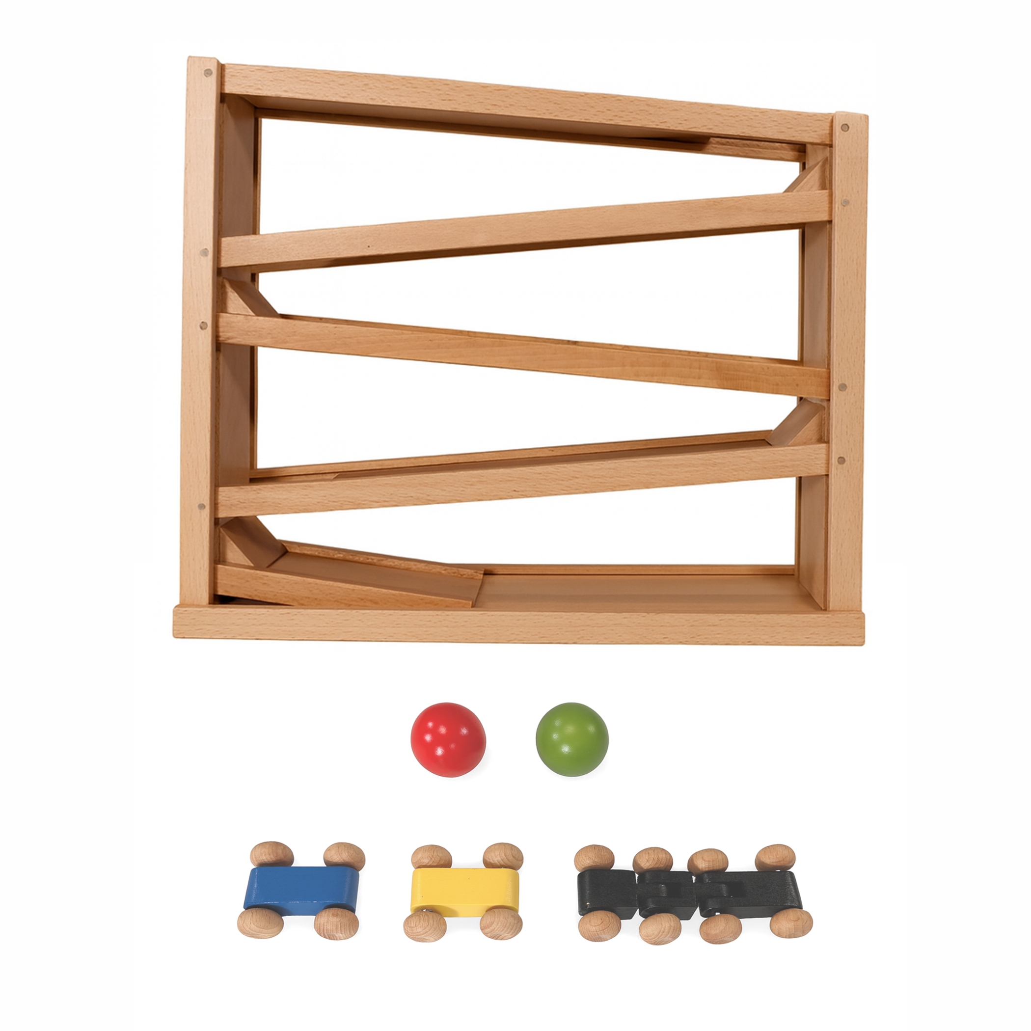 Holz Kugelbahn Buche, Autorennbahn ab 2 Jahren mit 3 Autos und 2Kugeln