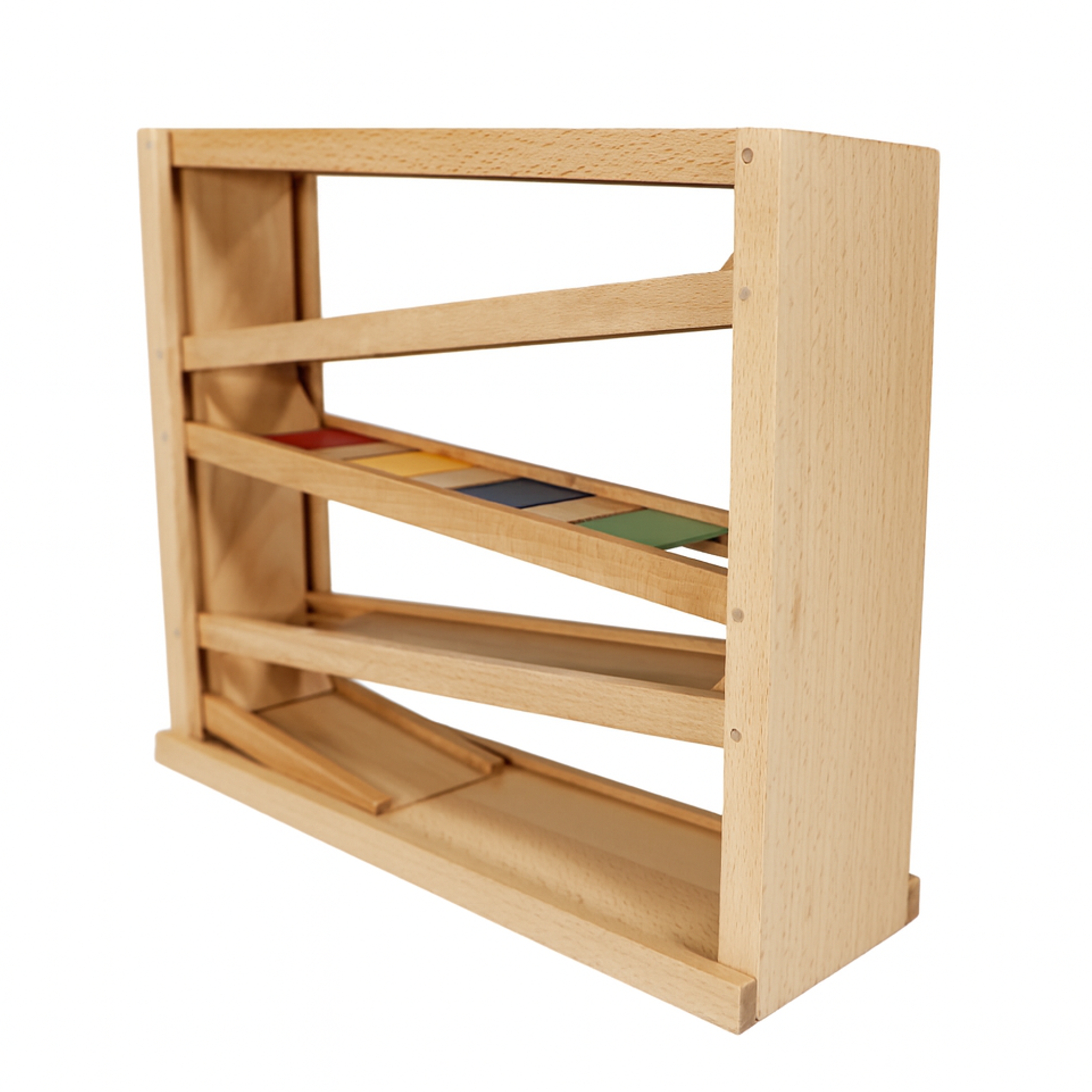 Statt blinkender Lichter und lauter Geräusche setzt diese Kugelbahn bewusst auf Reduktion. Dein Kind konzentriert sich auf das Wesentliche: Ursache und Wirkung, Bewegung, Tempo und die eigenen Handgriffe. Das entspricht dem Montessori-Gedanken von freiem Experimentieren, Beobachten und Wiederholen. Die Holz Kugelbahn ist aus massiver Buche gefertigt und bleibt durch ihr zeitloses Design lange aktuell. Der natürliche Look fügt sich harmonisch in Kinderzimmer oder Wohnzimmer ein – du musst kein kunterbuntes Plastik akzeptieren, wenn du lieber eine warme Holzoptik magst.