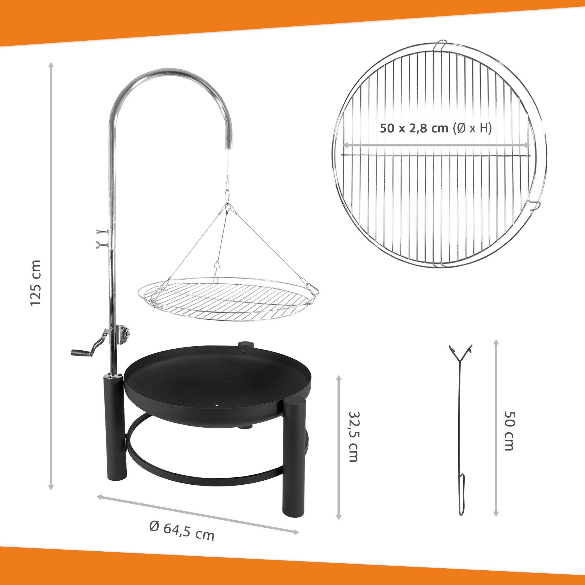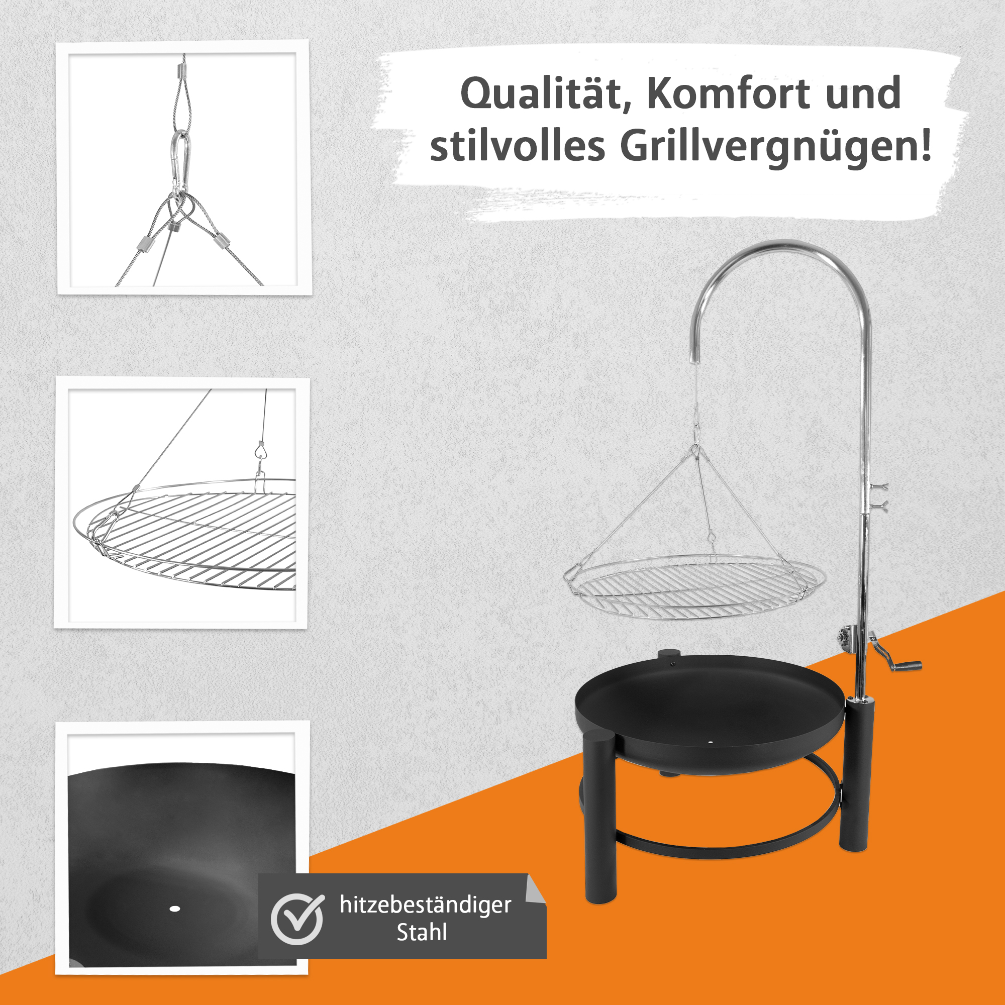 Produktinformationen "Holzkohlegrill mt schwenkbarem Grillgitter, Feuerschale, Schwenkgrill mit Kurbel"