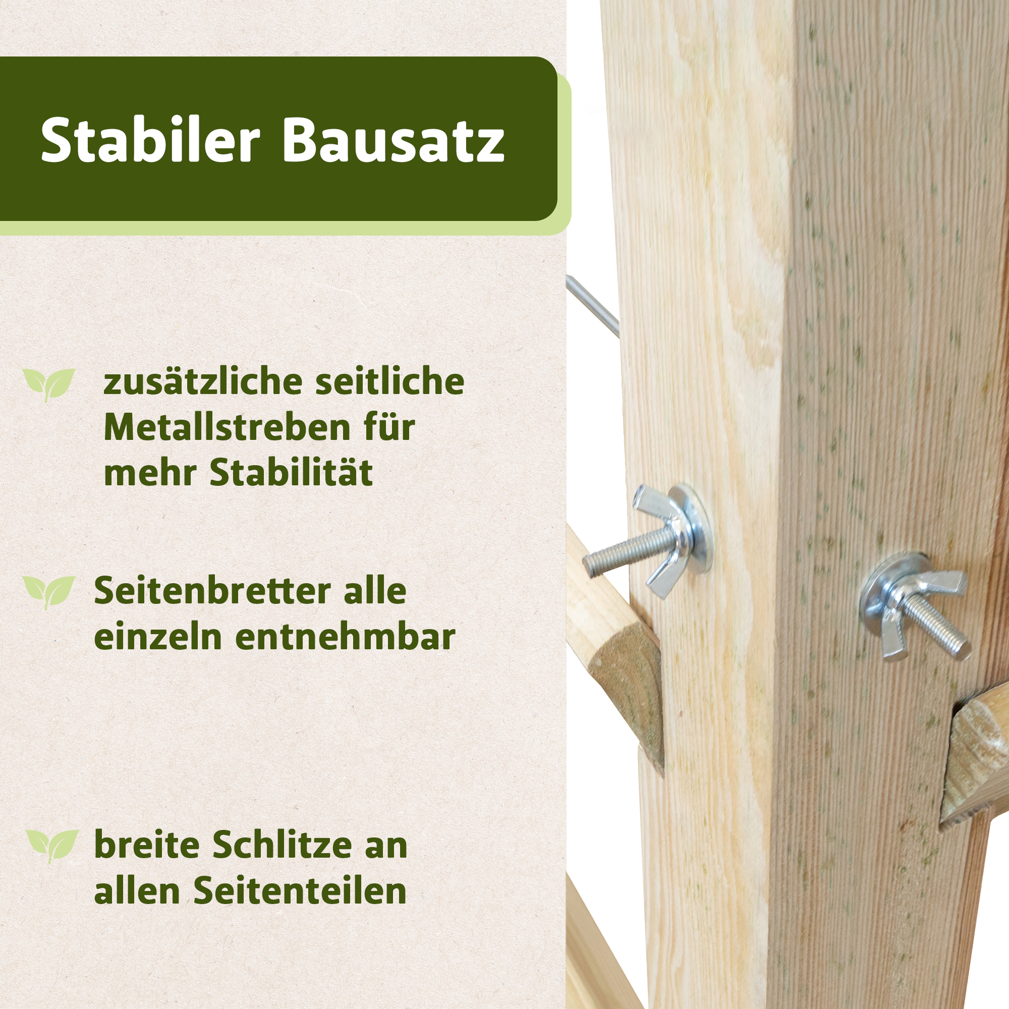 - zusätzliche seitliche Metallstreben für mehr Stabilität