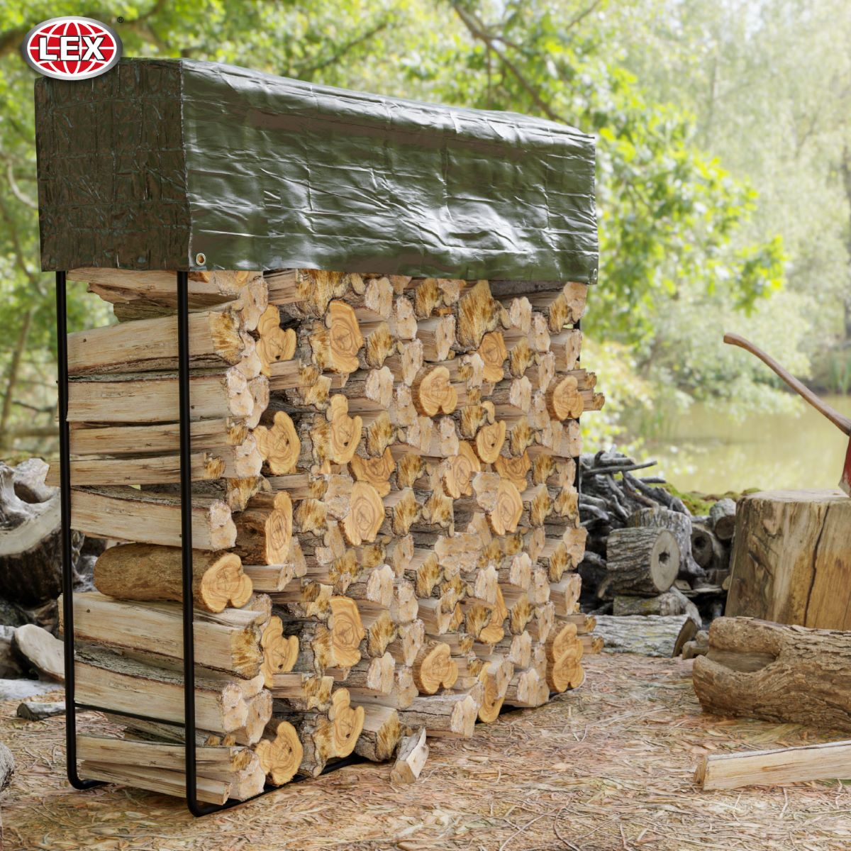 Kaminholzregal Außen aus Stahl, schwarz, Brennholzregal mit Abdeckung