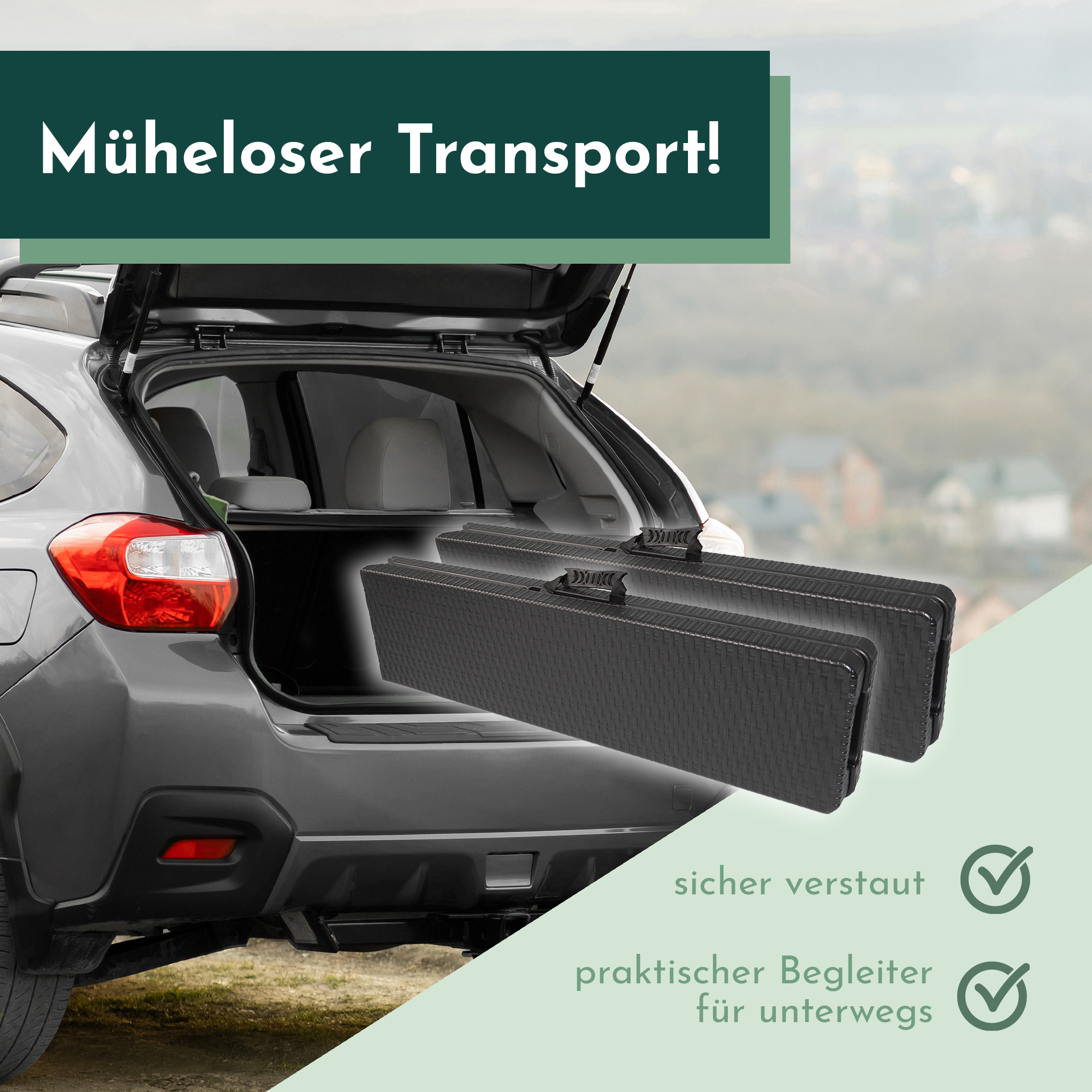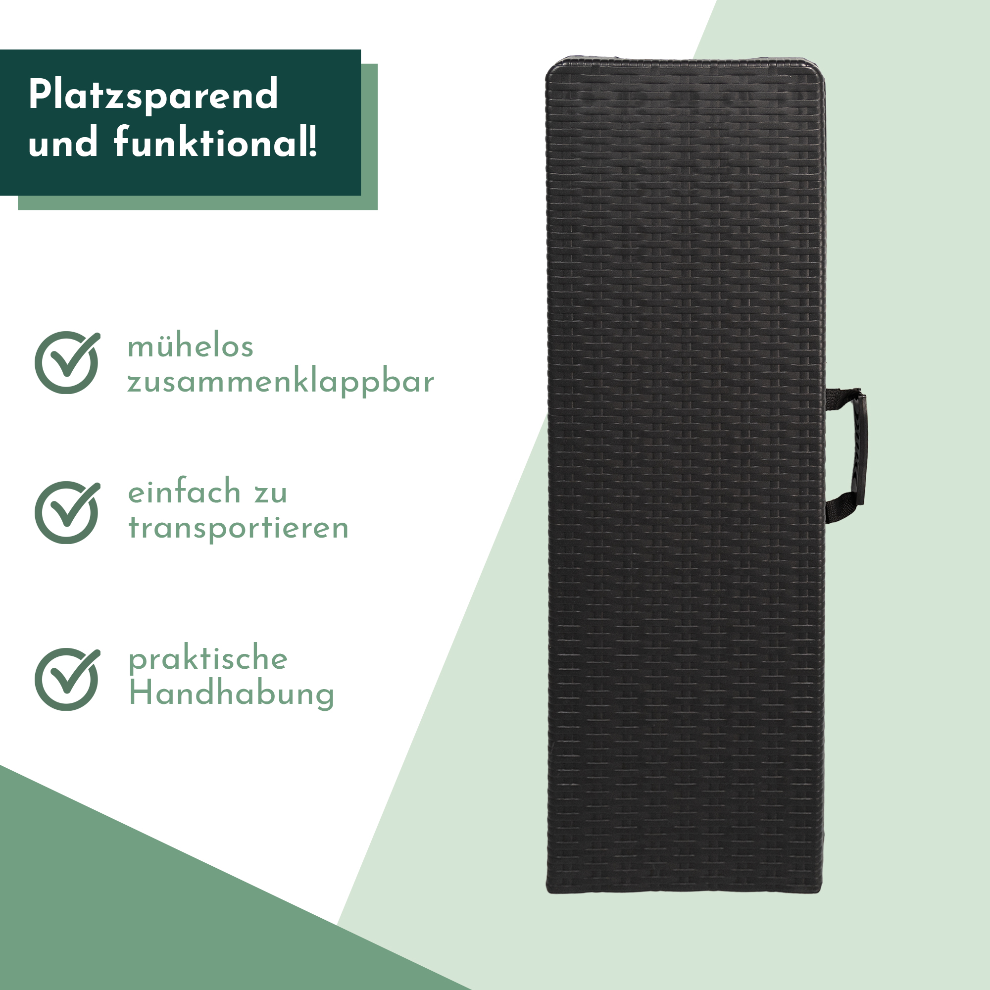- Größe zusammengeklappt: L 90 x B 25 x H9 cm