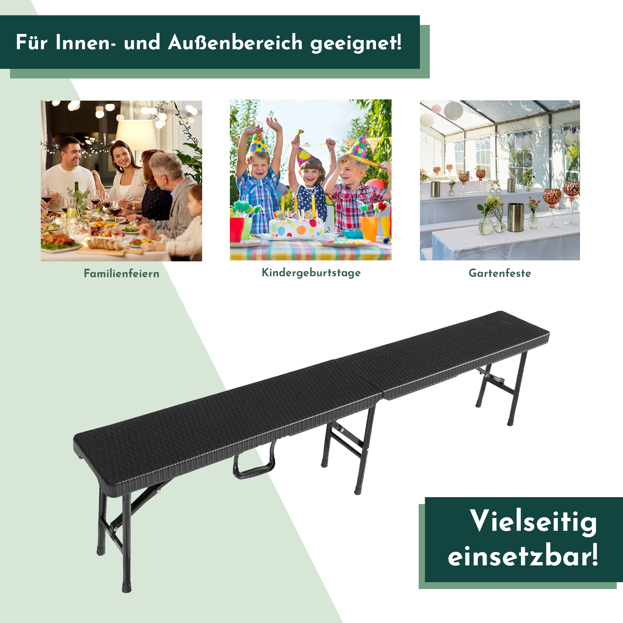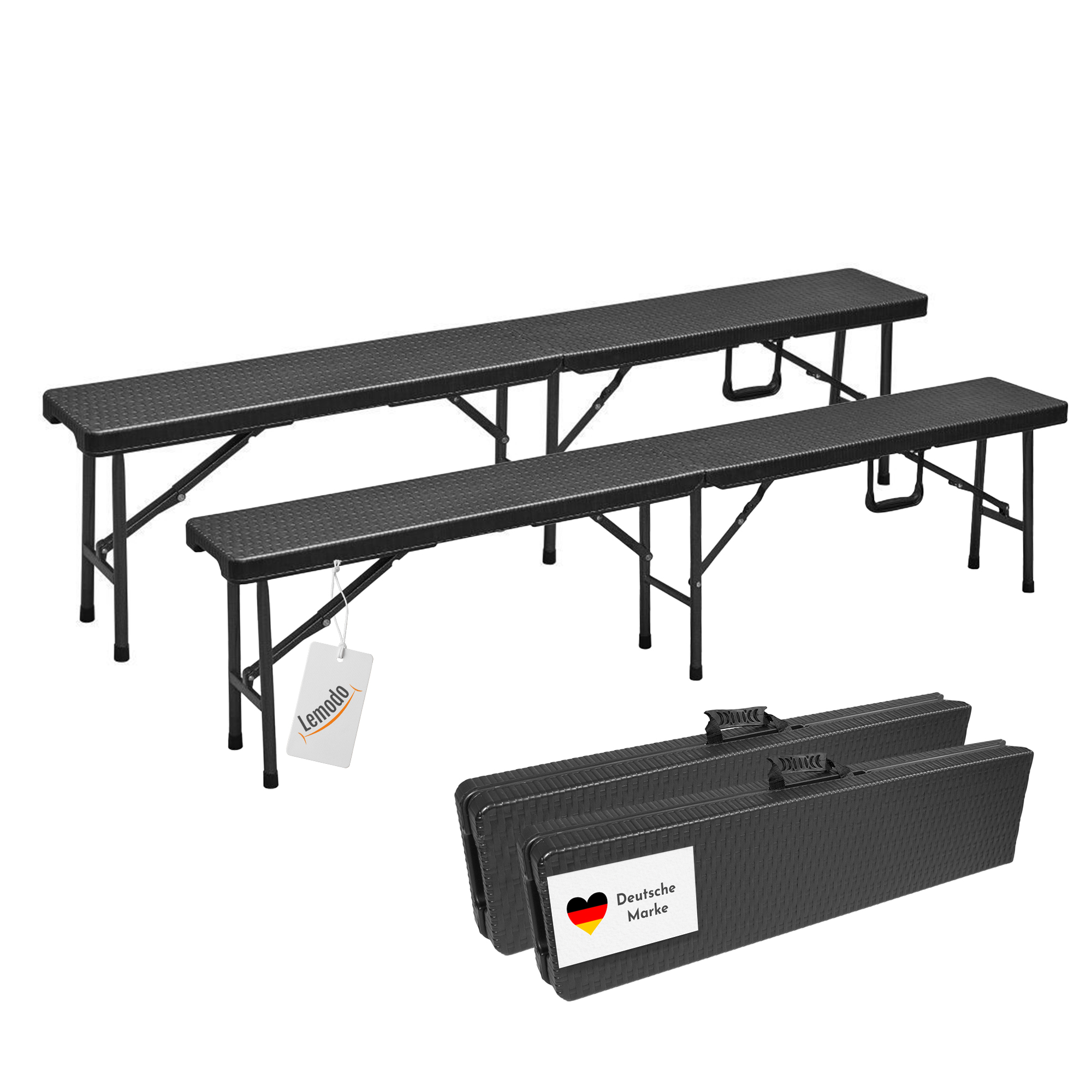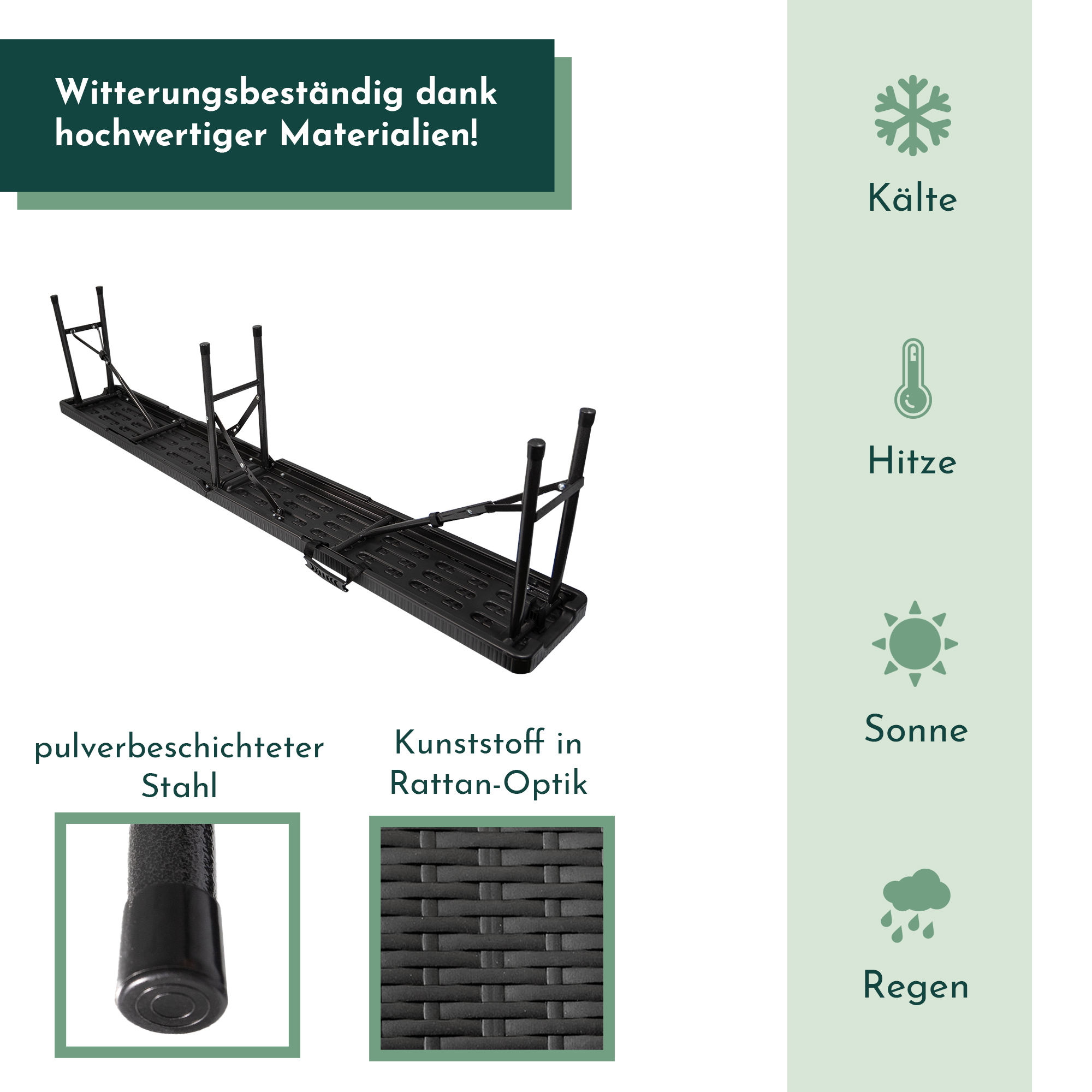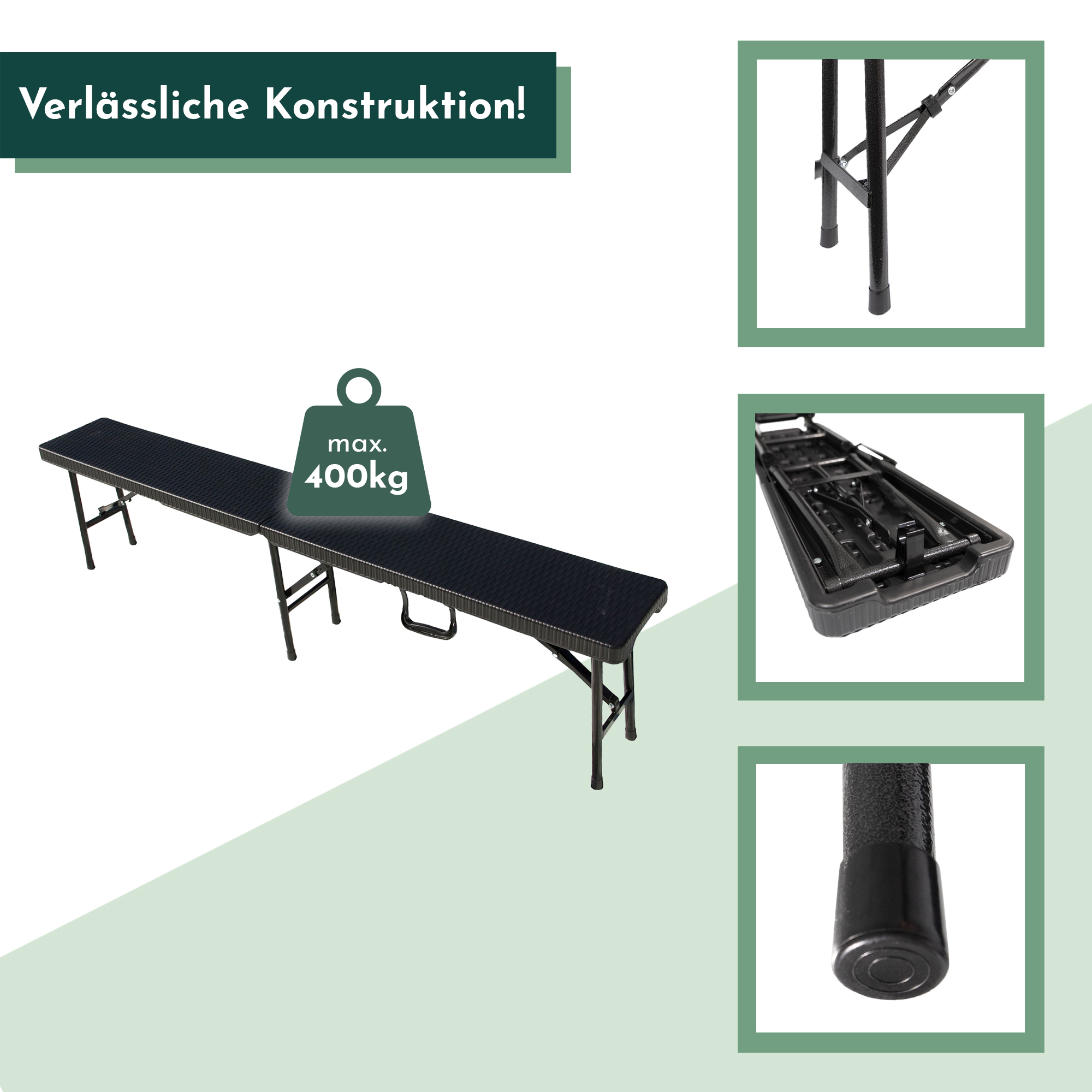 Produktinformationen "Klappbank, 2-er Set, Rattan-Optik, 180 cm, Bierzeltbank schwarz"