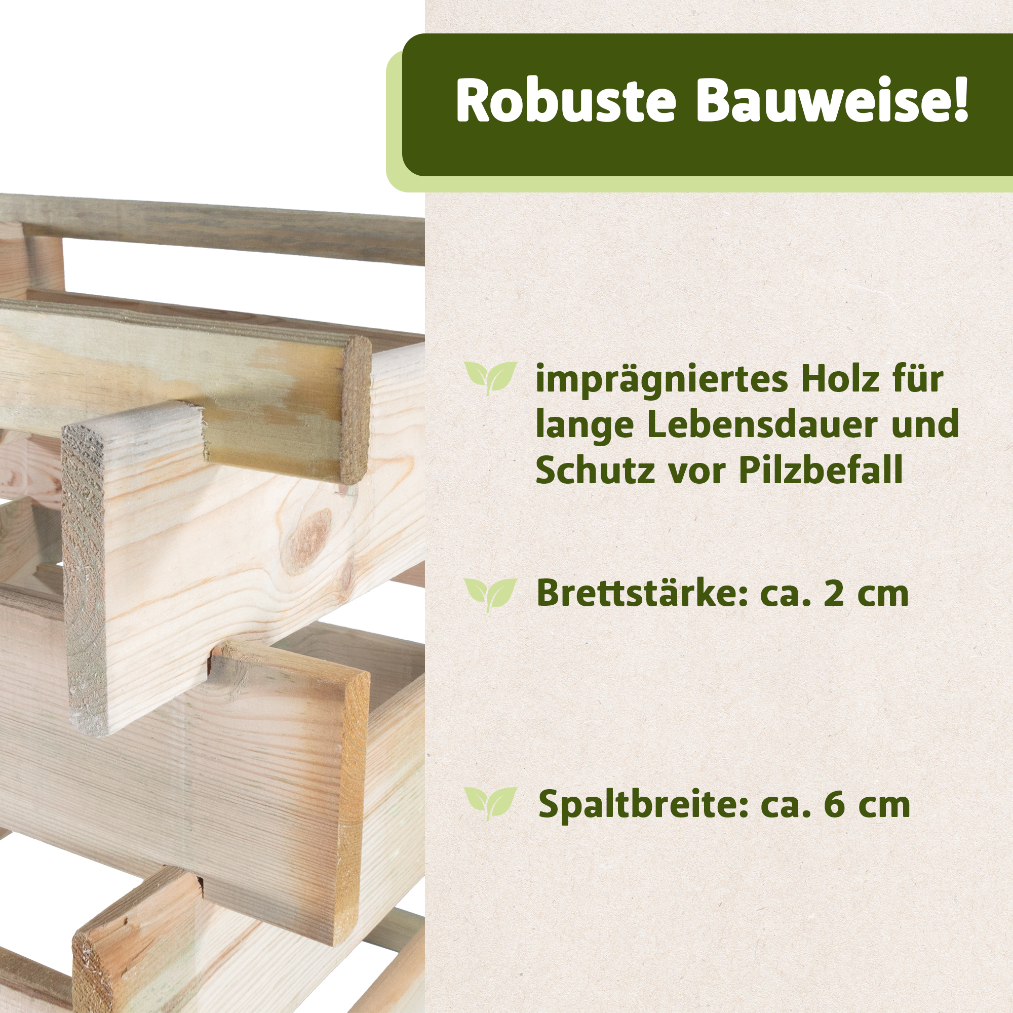 - imprägniertes Holz für lange Lebensdauer und Schutz vor Pilzbefall