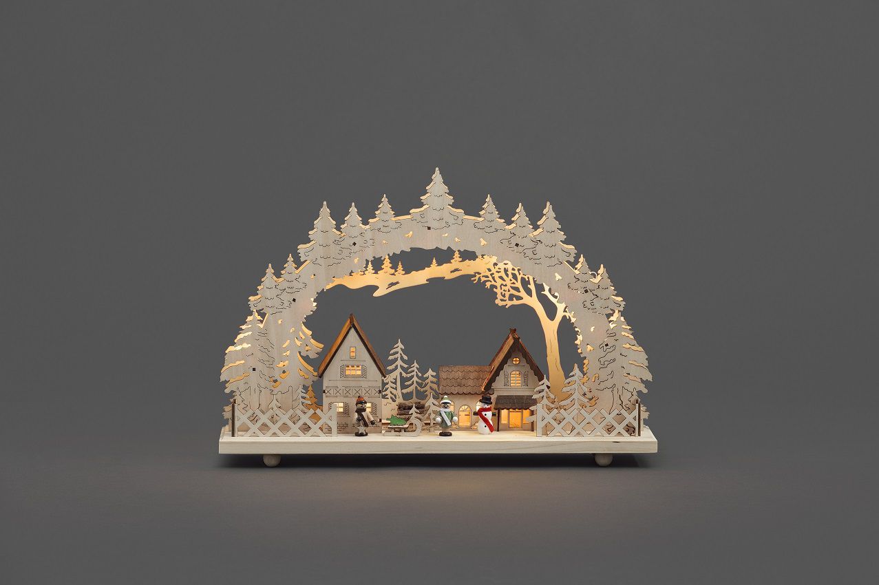 LED Holzsilhouette Winterdorf, naturfarben, Winterdorf mit Beleuchtung