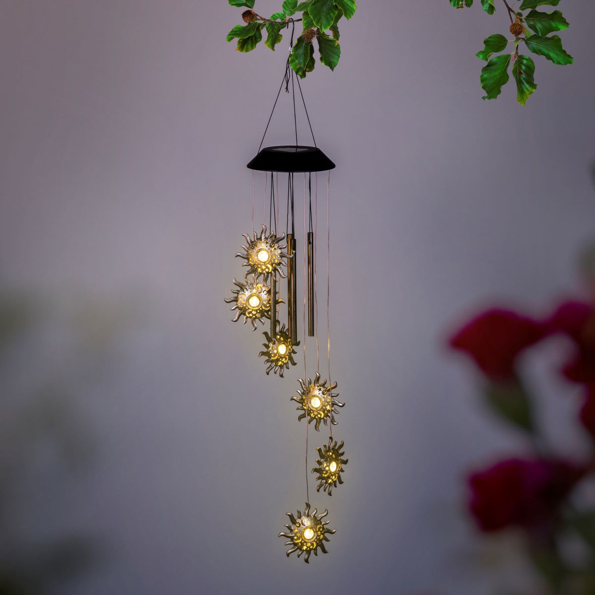 LED Solar Windspiel Sonne, Solarleuchten hängend mit Klangstäben