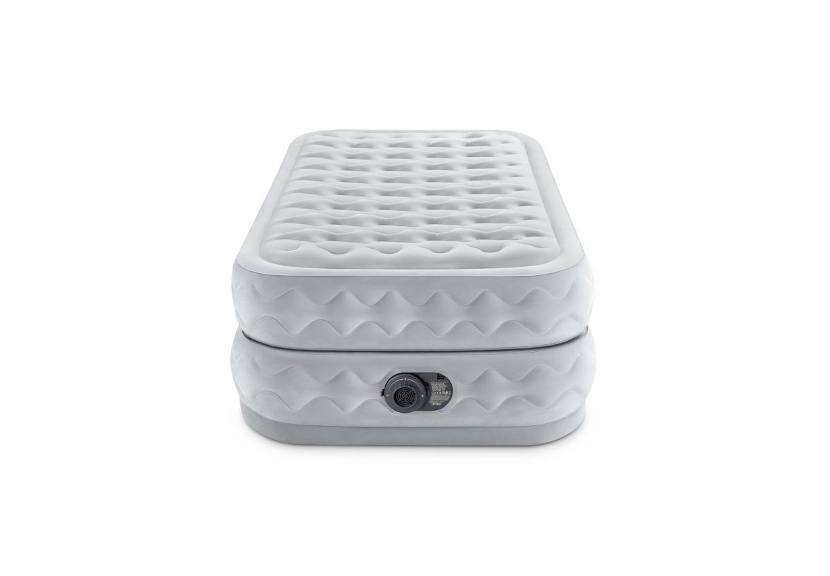 Die Luftmatratze Intex Ultra Plush Headboard für 2 Personen mit den Maßen 236x152x86 cm ist für den Heimgebrauch geeignet. Die Luftmatratze hat eine Höhe von 86 cm, was das Ein- und Aussteigen sehr einfach macht. Das funktionelle integrierte Kopfteil bietet Rückenstütze beim Faulenzen oder Fernsehen und hält Kissen auf dem Bett. Die Innenseite der Luftmatratze enthält Polyesterfäden, die von der Ober- zur Unterseite der Luftmatratze verlaufen. Diese Tausenden von Fasern sorgen für perfekte Stabilität und hervorragende Unterstützung des Körpers. Diese innere Struktur mit unterstützten Dura-Beam-Fasern, auch Fiber-Tech-Technologie genannt, ist ein einzigartiges Merkmal dieser Intex-Luftmatratzen und ein Garant für ein angenehmes Schlaferlebnis. Die Luftmatratze verfügt über eine interne Quickfill Plus-Pumpe, sodass Sie sie nur einstecken und den Knopf auf „+“ drehen müssen, um die Luftmatratze aufzublasen. Um die Luftmatratze nach Gebrauch zu entleeren, drehen Sie den Knopf auf „-“ und die Luftmatratze entleert sich. Im Gegensatz zu den anderen Luftmatratzen haben die Luftmatratzen der Dura-Beam Deluxe-Serie horizontale Balken für den ultimativen Komfort. So schaffen Sie in wenigen Minuten einen schönen Schlafplatz auf dem Campingplatz, an Ihrer Gästeadresse oder für Übernachtungsgäste. Merkmale Fiber-Tech Technology: Tausende aus Polyesterfasern, die eine optimale Körperunterstützung und perfekten Schlafkomfort bieten Wasserabweisend und leicht zu reinigen Extra plüschige, samtweiche Oberfläche Verfügt über eine einzigartige Kanten- und Bodenringkonstruktion, die für hervorragende Stabilität sorgt Wird mit praktischem Transport und Aufbewahrung geliefert Tasche Höhe von 86 cm, erleichtert das Ein- und Aussteigen Horizontale Träger für ultimativen Komfort Eingebaute QuickFill Plus-Pumpe (220 - 240 V) Technische Daten Höchstgewicht: 272 kg Abmessungen: 236x152x86 cm Liegehöhe 46 cm Voltanschluss: 220 - 240V Aufblaszeit: 5 Minuten Luftmatratze Gewicht: 12,4 kg Farbe: Grau