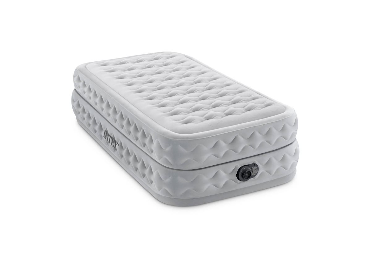 Erlebe höchsten Schlafkomfort mit dem Intex Luftbett Dura-Beam Plus Prime, ausgestattet mit einer leistungsstarken elektrischen Quick-Fill-Pumpe. Ob für Gäste, Campingausflüge oder spontane Übernachtungen – dieses Luftbett bietet Dir maximalen Komfort und eine bequeme Schlafmöglichkeit. Dank der integrierten 220–240V Elektropumpe lässt sich das Bett in nur wenigen Minuten mühelos aufpumpen und ebenso schnell wieder entlüften, sodass es sich platzsparend verstauen lässt. Die samtig, beflockte Oberfläche sorgt für ein angenehm weiches Liegegefühl, während die robuste Dura-Beam-Konstruktion mit internen Luftkammern optimale Stabilität und ergonomische Unterstützung bietet. So genießt Du eine erholsame Nacht – fast wie im eigenen Bett!Produktdetails: 0,52 mm qualitätsgeprüfte, wasserfeste, beflockte Oberseite 0,42 mm Vinyl Seitenwand und Boden Inkl. Quick-Fill-Pumpe 220-240 V Kabellänge: 1,55 m Ausstattung: 1 x Aufbewahrungstasche Produktinformationen: Quick-Fill-Pumpe ermöglicht automatisches Aufblasen und Entleeren per Knopfdruck Weiche, beflockte Oberfläche sorgt für angenehmen Schlafkomfort Einfach zusammenfaltbar und leicht zu verstauenIdeal für Gäste oder Campingausflüge