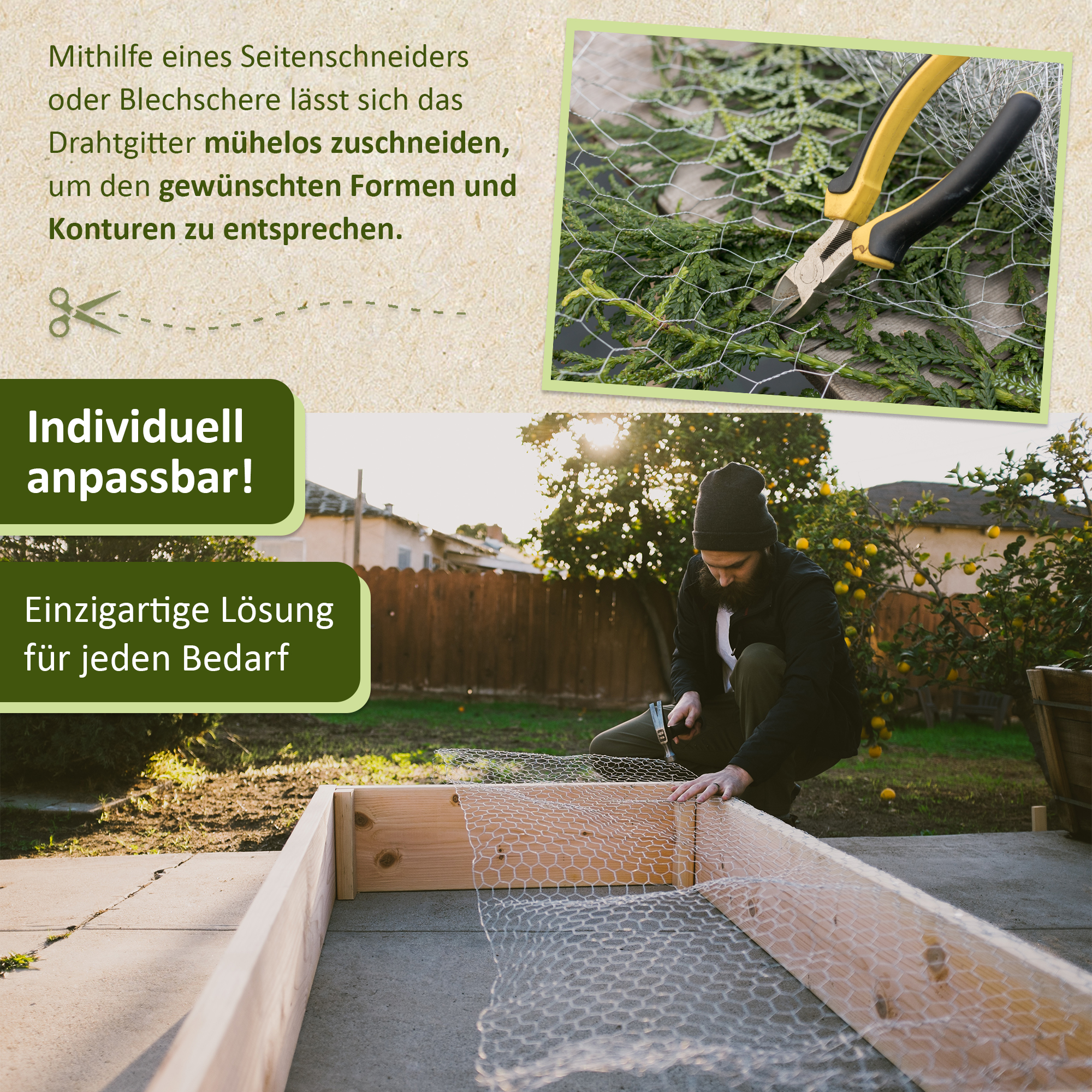 - INDIVIDUELL ANPASSBAR: Das Drahtgeflecht lässt sich mühelos mit einer stabilen Schere oder einer Blechschere zuschneiden. Der Hasendraht lässt sich flexibel formen, um sich den Konturen des zu schützenden Bereichs anzupassen