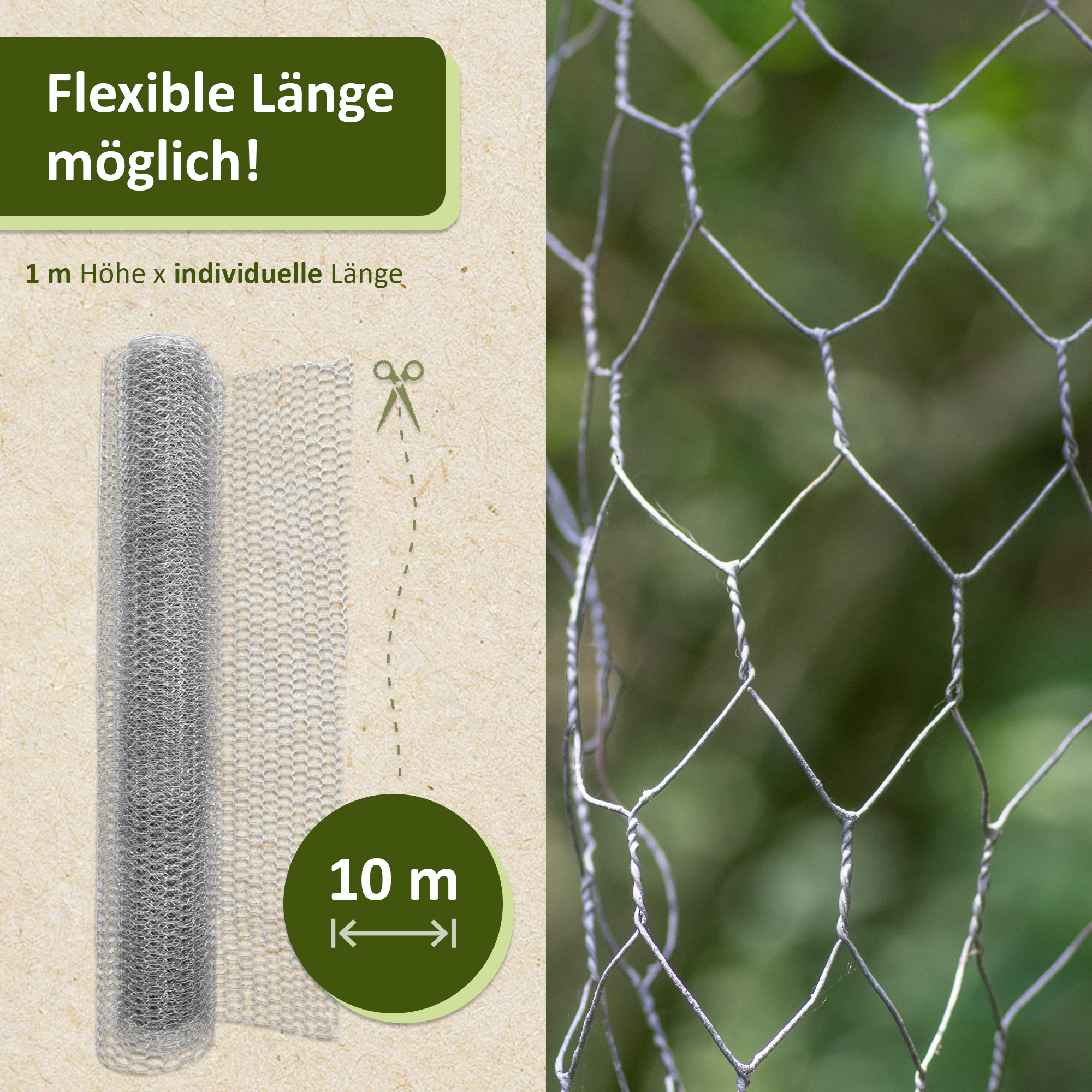 - VIELSEITIG EINSETZBAR: Der Kaninchendraht kann vielseitig verwendet werden. Ob als Rankhilfe, Wühlmausgitter oder Schutzgitter für Hochbeete. Als Hasenzaun oder Hühnerzaun ist das Sechseckgeflecht das ideale Kleintiergehege