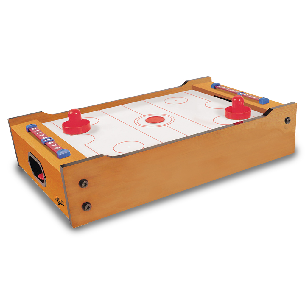 2 Spiele in einem. Einfach den Tisch umdrehen und schon wechselt das Spiel vom Kicker zum Gleithockey.