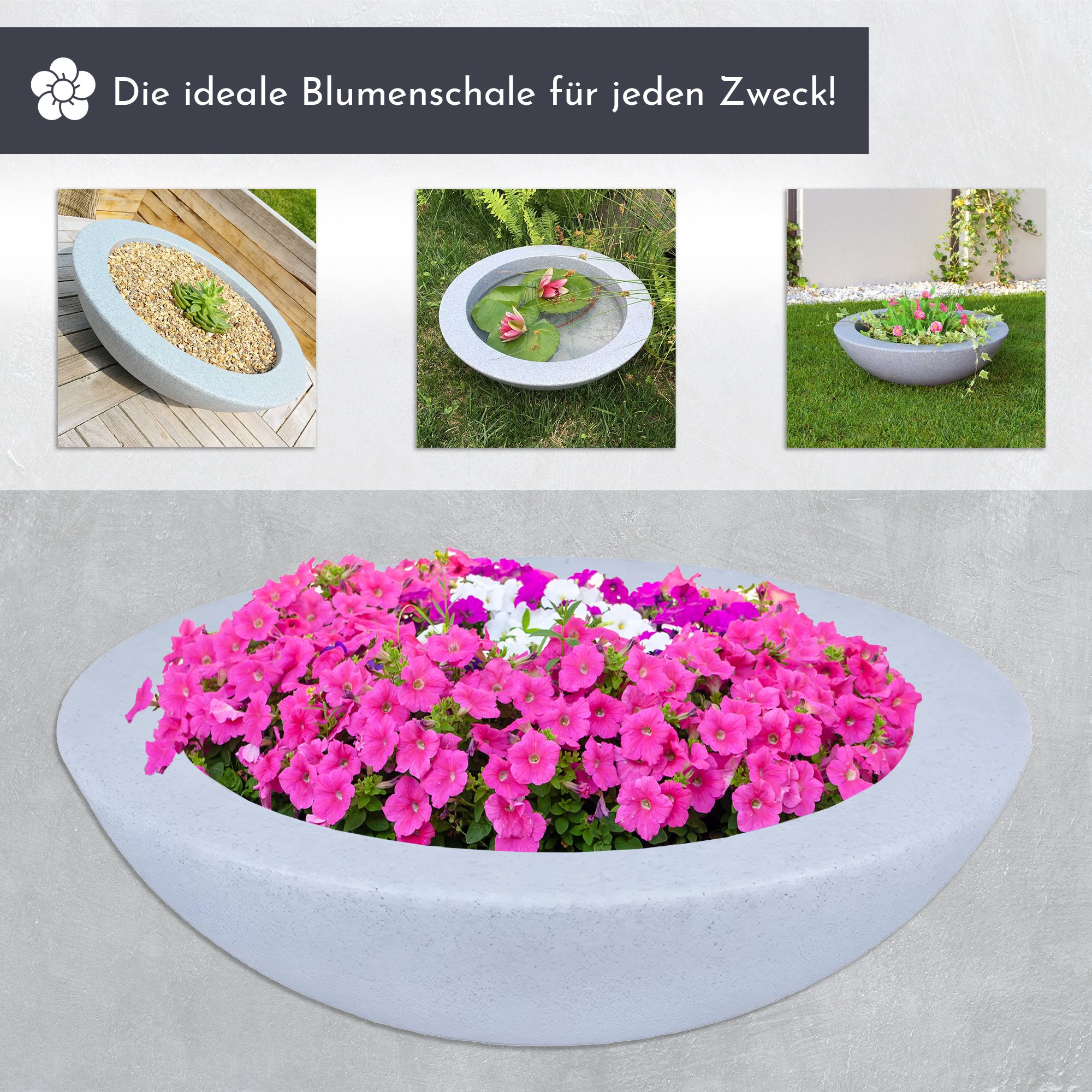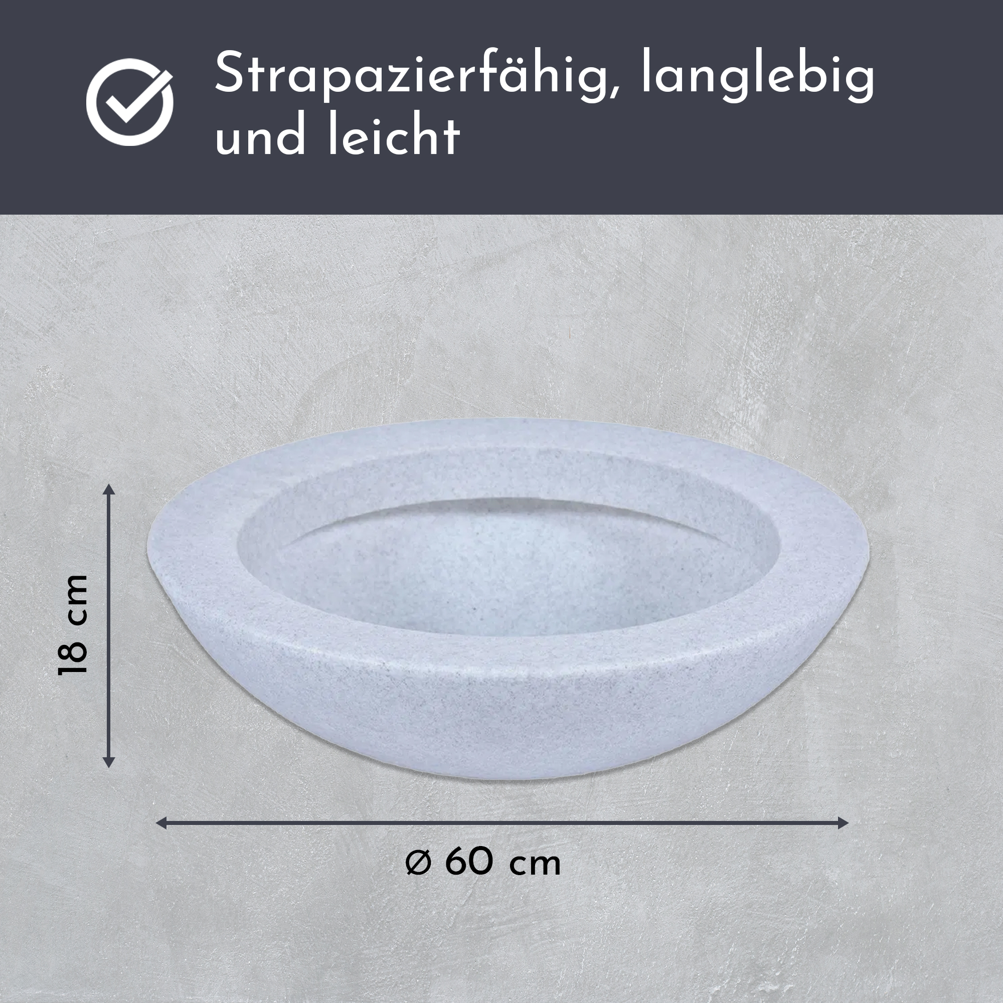 Pflanzschale aus Kunststoff, 60 cm, hellgrau, Blumenschale, Zierteich