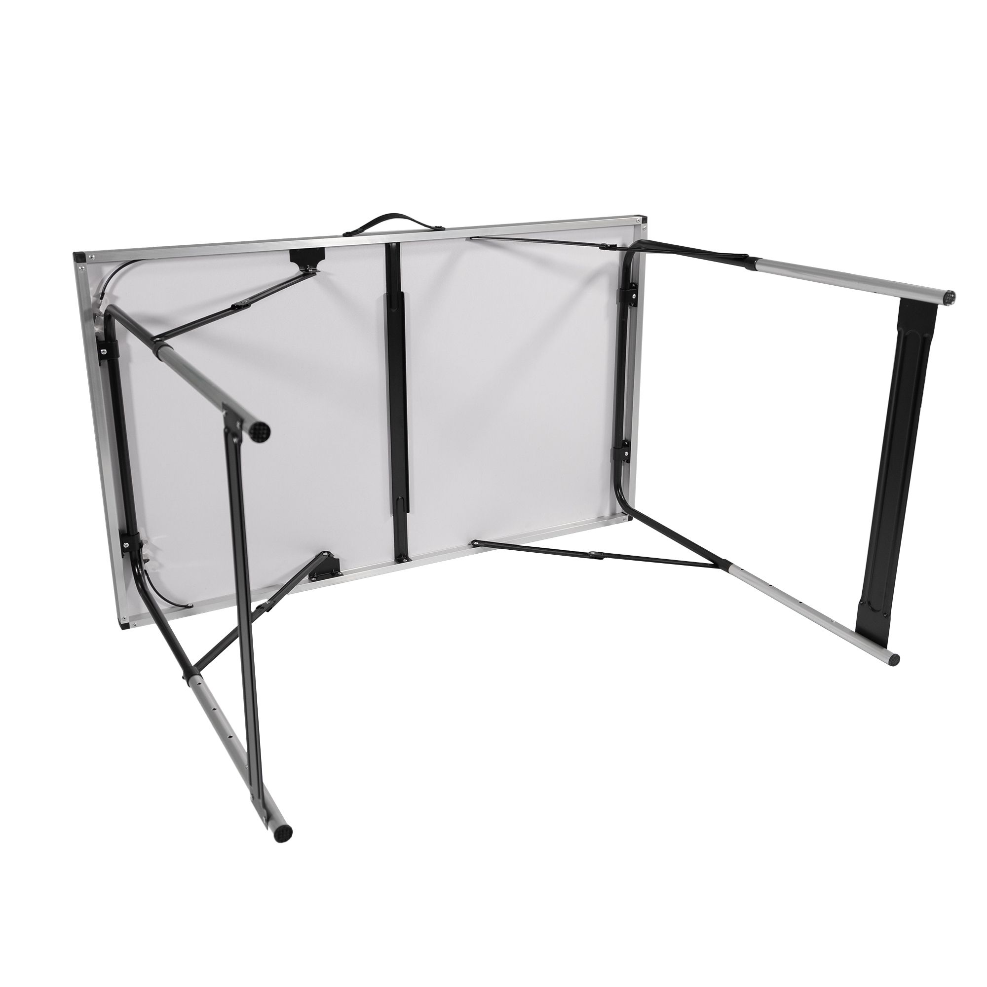 Ob Sie Kunstwerke verkaufen, auf dem Trödelmarkt handeln, Malerarbeiten durchführen oder ein Fest feiern – dieser Tisch ist für Sie geeignet. Er hat eine stabile Oberfläche und ist leicht zu handhaben. So können Sie sich auf Ihre Arbeit oder das Feiern konzentrieren. Der Aluminiumtapeziertisch ist mehr als nur ein Tisch – er ist ein vielseitiger Helfer, der Ihnen in vielen Lebenslagen zur Seite steht.