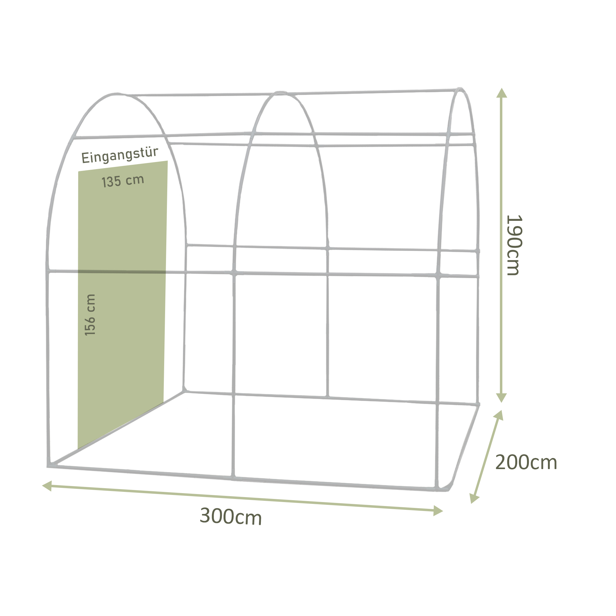 - Abmessungen: 300 x 200 x 200 cm (L x B x H)