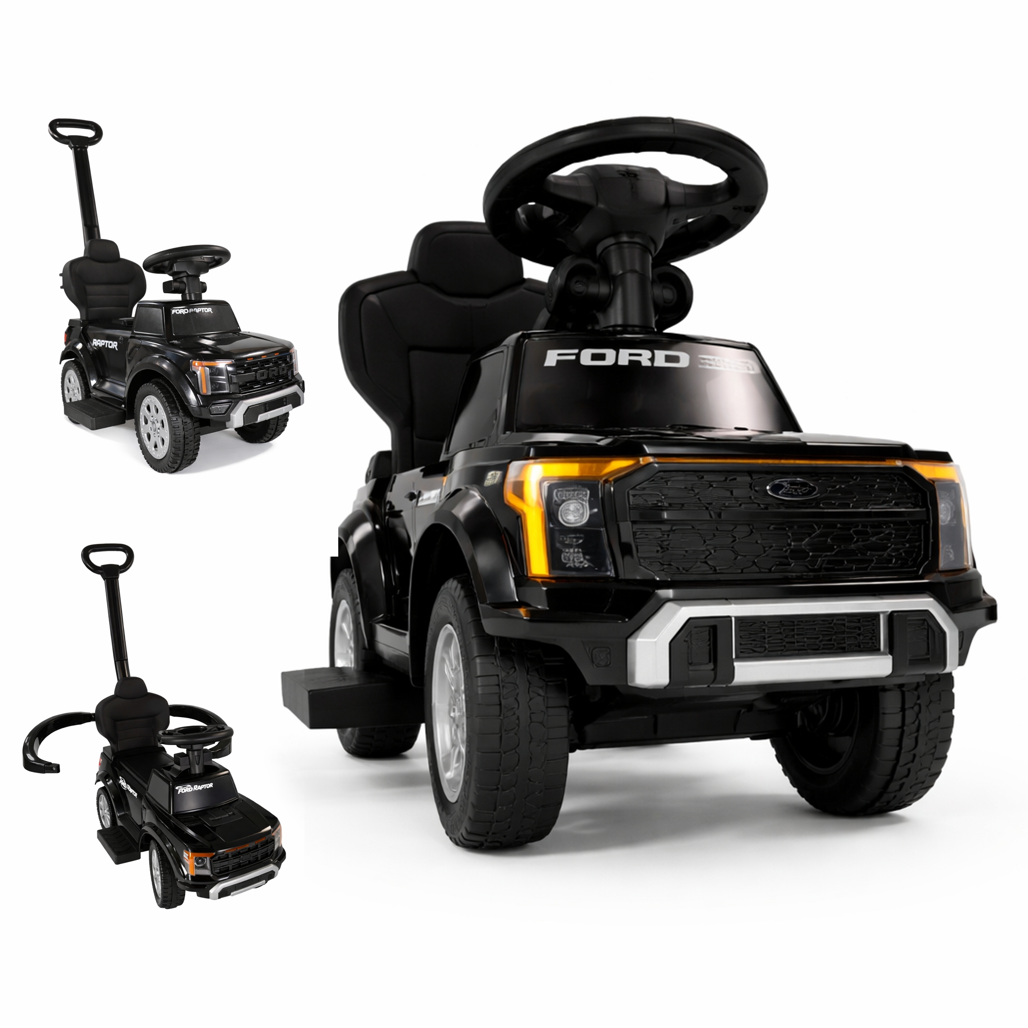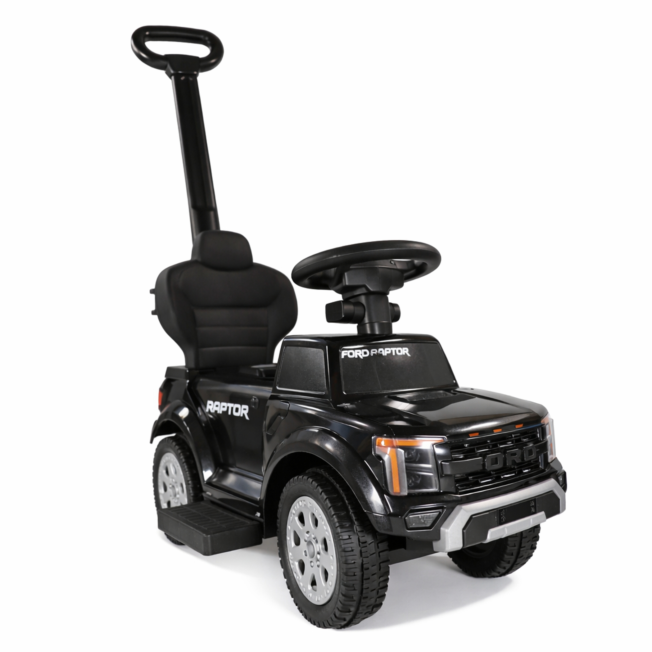 Produktinformationen "Rutschauto Ford F-150 schwarz mit Schiebestange, Bügel und Staufach"