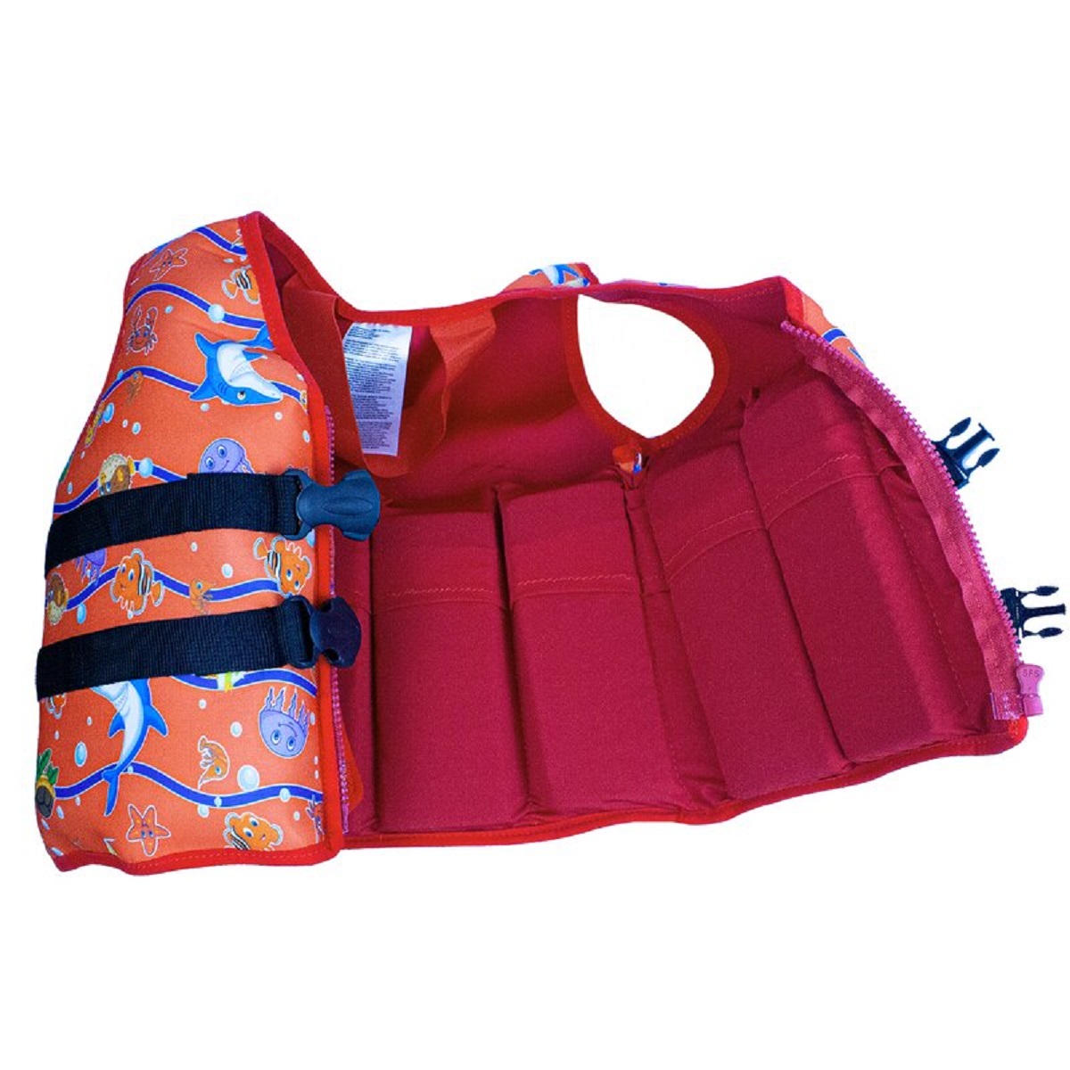 Eine Schwimmweste hilft dem Kind schwimmen zu lernen und sich sicherer im Wasser zu bewegen. Die farbenfrohe maritime Jacke hat einen Reißverschluss sowie zwei verstellbare Gurte, die für einen festen Sitz sorgen. Die integrierten Styroporeinsätze können je nach Schwimmniveau einzeln entfernt werden.