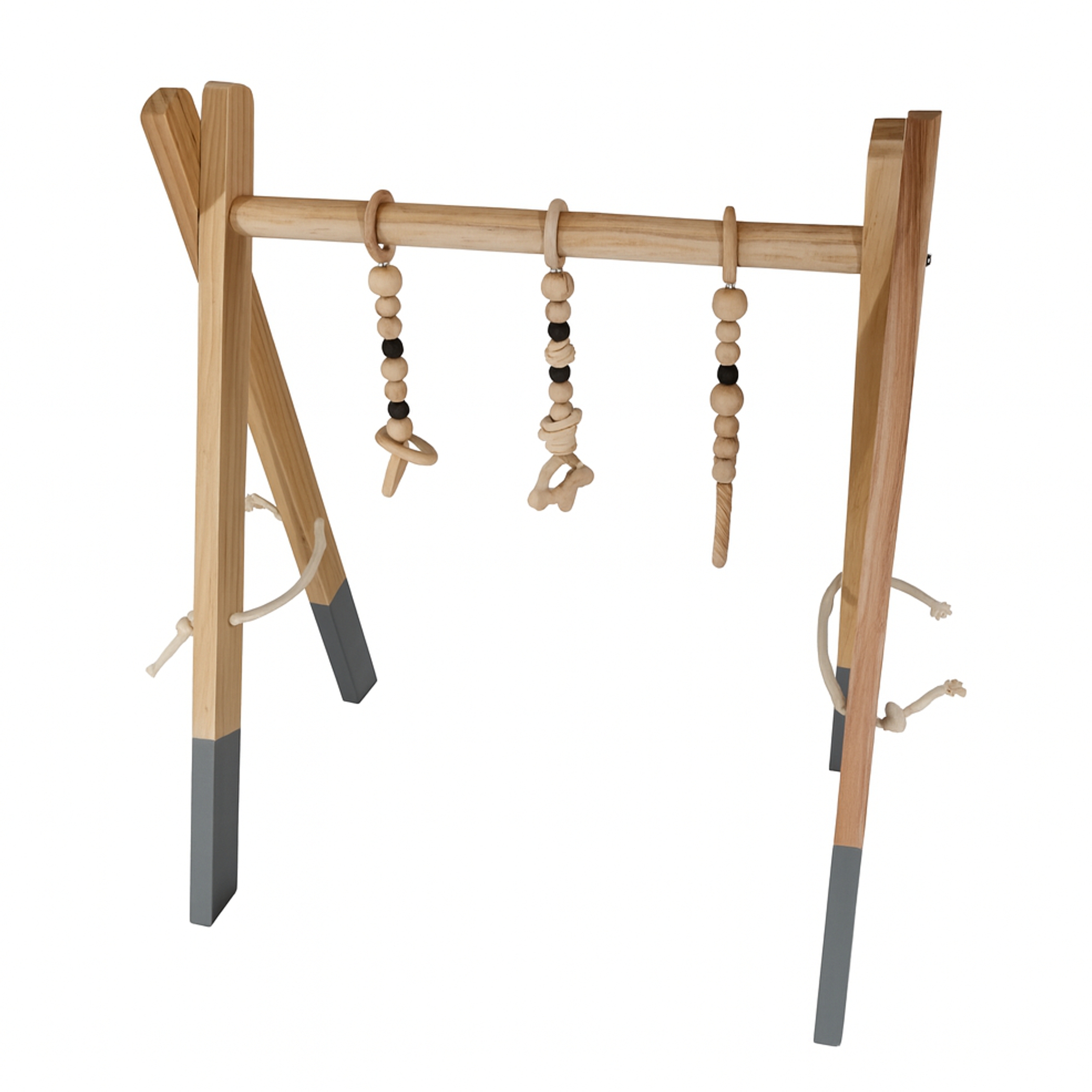 Spielbogen Baby aus Kiefernholz natur, klappbar mit Anhängern