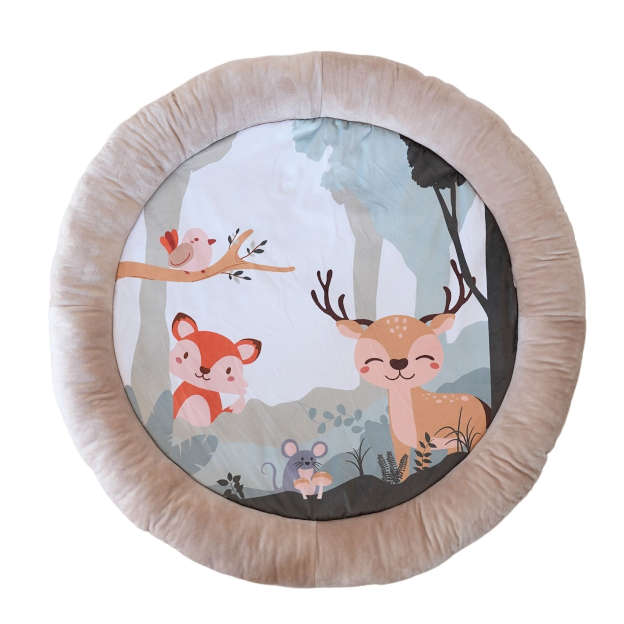 Entdecke die spannende Erlebnisdecke von BoJungle, ausgestattet mit zahlreichen Zubehörteilen für Dein Baby von Geburt an! Das moderne, sanfte Design, die 30 bunten Bälle sowie reizvolle Rasseln fördern die motorischen und kognitiven Fähigkeiten Deines Babys. Dank des Aufbewahrungsnetzes lassen sich die zusätzlichen Spielutensilien schnell und einfach verstauen. Die vielseitige Erlebnisdecke lässt sich mühelos in ein Bällebad verwandeln und bietet vier verschiedene Spielpositionen für unendlich viel Spaß während der Entwicklung in den ersten Monaten. Ausgestattet mit einem gemütlichen Bauch-Kissen und liebevollen, waldinspirierten Details ist es der ideale Spielplatz für Dein Neugeborenes. Die Dschungelparty kann beginnen!Produktdetails:Material Spieldecke: 100% PolyesterMaterial Spielbälle: 100% PolypropyleneGröße: 106 x 106 x 56,5 cm (L x B x H)Farbe: grau oder mehrfarbigGewicht: 0,66 kgAltersempfehlung: 0 - 24 MonateAusstattung: 30 x Spielbälle, verschiedene RasselnProduktinformationen:Spieldecke für kleine Entdecker von Geburt anFördert die motorischen und kognitiven Fähigkeiten Deines BabysDurch hochklappen der Seitenwände bietet die Spieldecke hohe Sicherheit während dem SpielerlebnisAusgestattet mit vielseitigem ZubehörFlexibel einsetzbar, lässt sich in Handumdrehen zu einem Bällebad verwandelnBietet 4 verschiedene Spielpositionen (Bauch, Rücken, Krabbeln oder Sitzen)