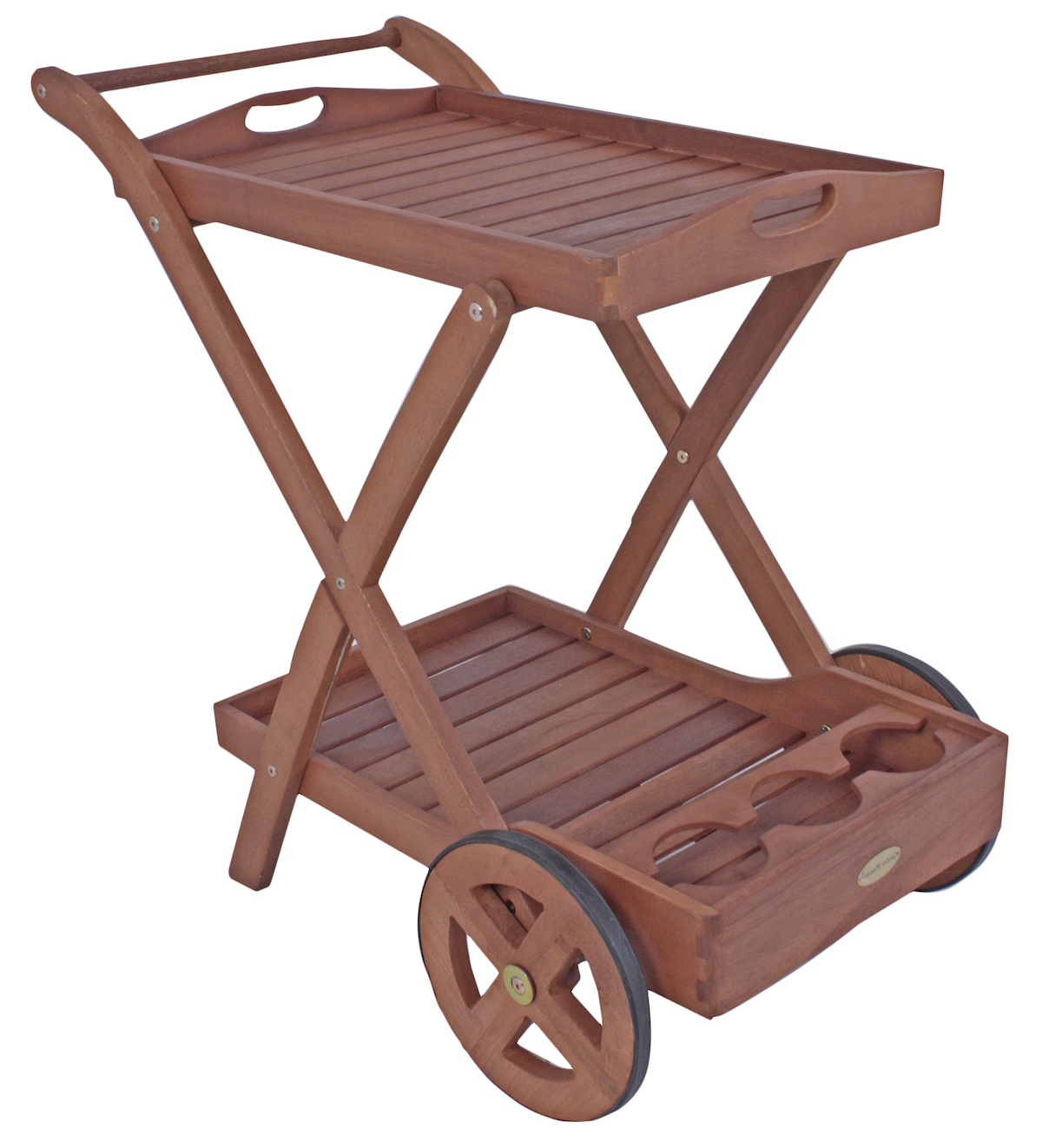 Mit unserem Teewagen TOLEDO können Sie sich dieses Gefühl nach Hause holen. Unser Teewagen TOLEDO verfügt über 2 Ebenen, besitzt ein abnehmbares Tablett und ist dank seiner Rollen äußerst flexibel und mobil einsetzbar. Die drei flachen Halterungen auf der unteren Ebene verhindern das Umfallen von Flaschen beim Transport. Der aus geöltem Eukalyptus FSC gefertigte Teewagen ist mit seiner Plattenstärke von 3 cm sehr robust und funktionell verarbeitet.