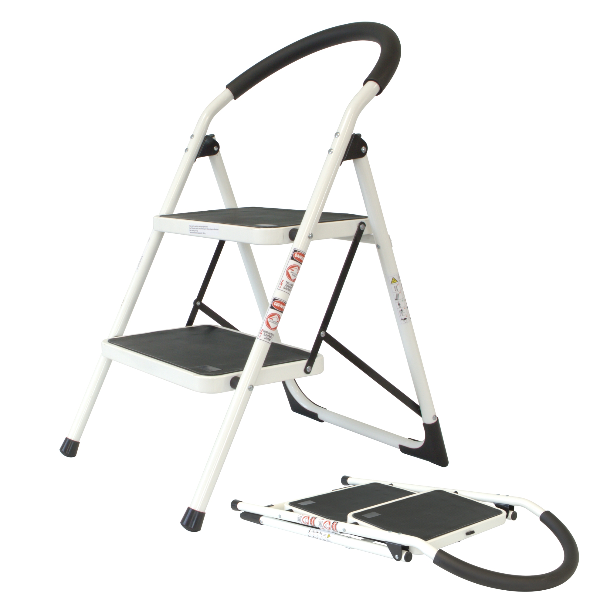 - HOHE SICHERHEIT: Rutschhemmende Standfüße sorgen für sicheren Stand der Haushaltsleiter auf fast jedem Untergrund. Geriffelte Stufen sorgen für einen sicheren Tritt. Der Sicherheitsbügel sorgt für zusätzlichen Schutz
