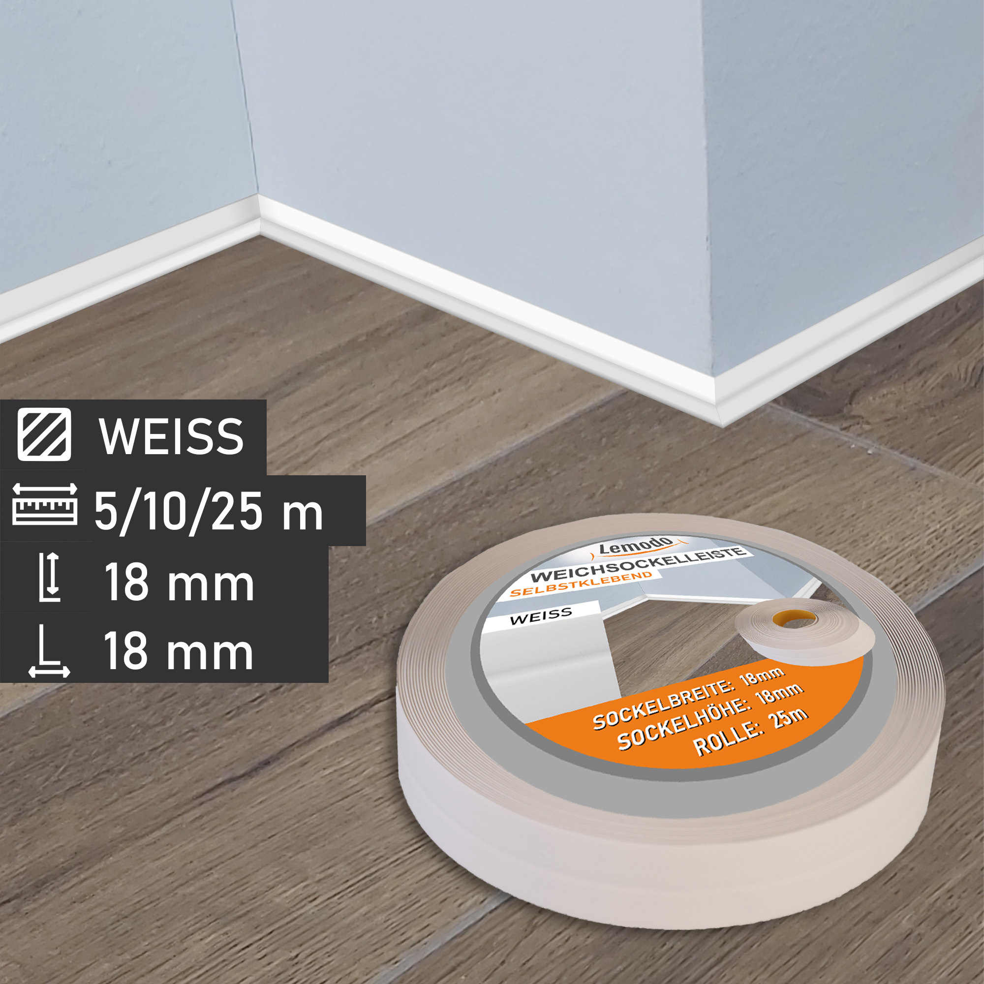 Weichsockelleiste selbstklebend 5 m, weiß, Sockelleiste auf der Rolle