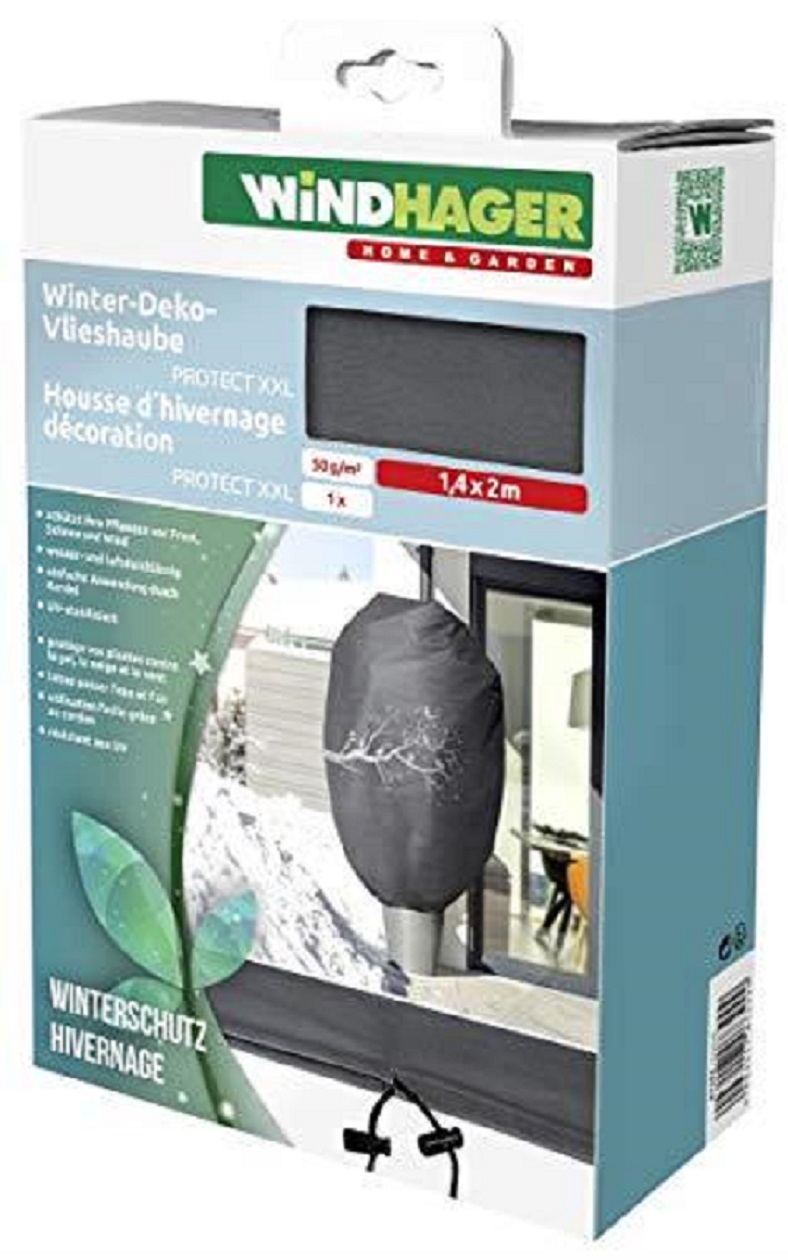 Mit den Vlieshauben von Windhager können Sie Ihre Sträucher, Topf- und Kübelpflanzen schnell und einfach vor Frost, Schnee und Wind schützen. Die Wintervliese sind wasser- und luftdurchlässig sowie UV-stabilisiert. Mit der integrierten Kordel kann der Wintermantel fest zugezogen werden. Die Bedruckung mit Hirsch-, Tannen- oder Vogelmotiv sorgt selbst bei grauem Wetter im Herbst und Winter für einen farblichen Akzent im Garten.