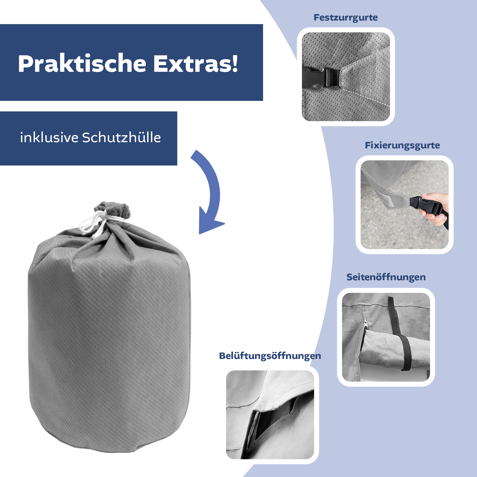 - OPTIMALER SCHUTZ: Die Wohnmobil Schutzhülle schützt ihr Wohnmobil zuverlässig vor Staub, Schmutz und Nässe. Damit ist ihr Zuhause auf Rädern optimal bei Nichtgebrauch geschützt - zu jeder Jahreszeit
