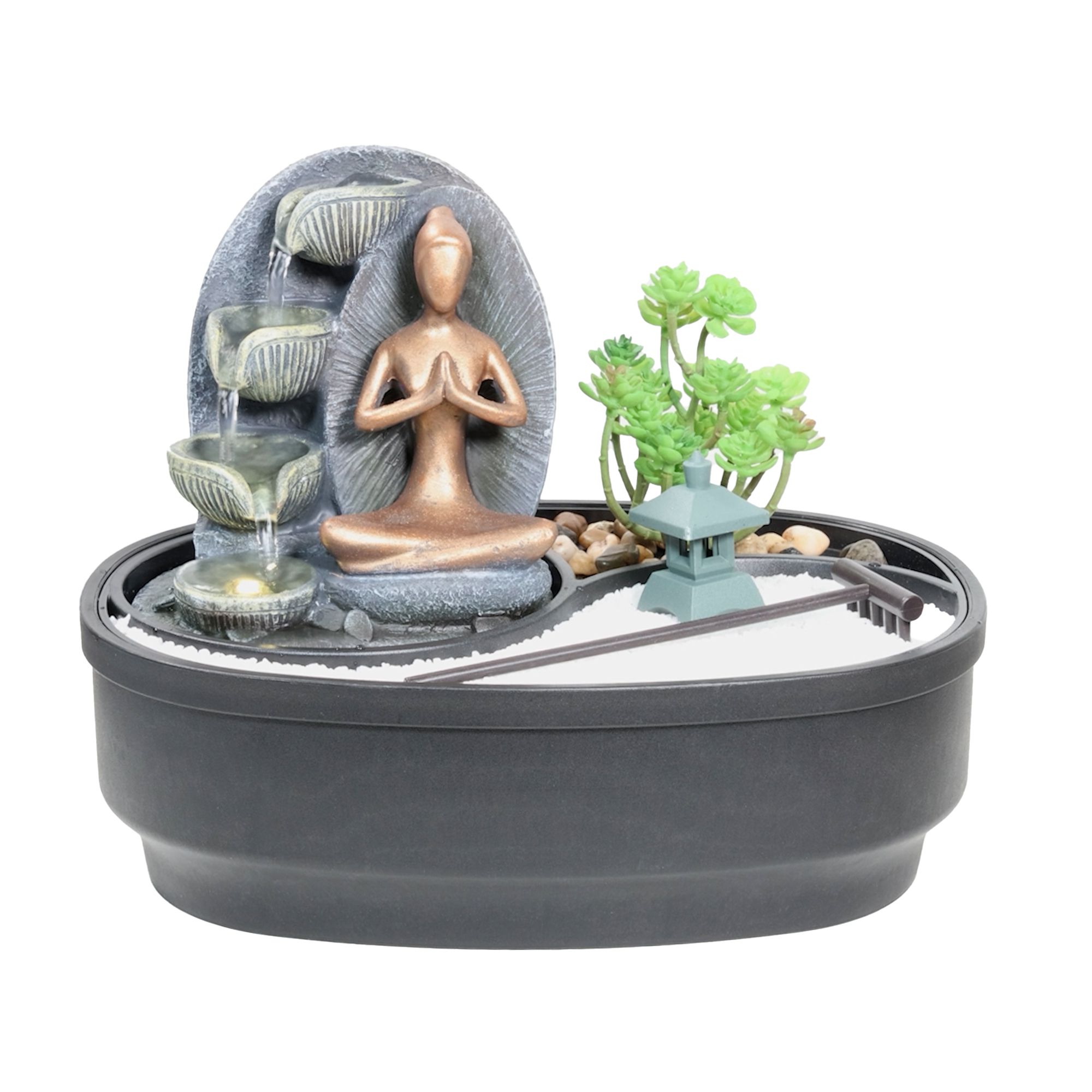Zimmerbrunnen mit ZEN Garten, Dekobrunnen Modern Namaste für die Wohnung